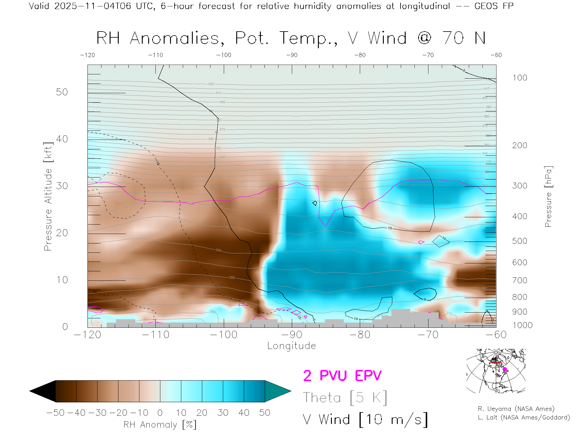 GEOS Forecast Rel. Hum. X-Section (70 N)