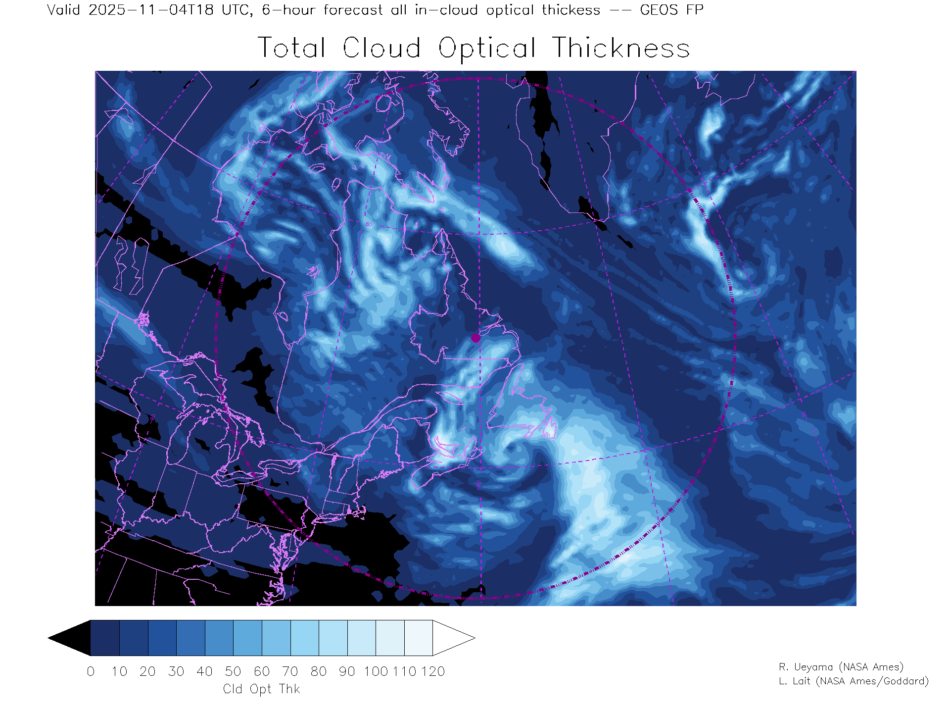 GEOS Forecast Total Cloud Optical thickness