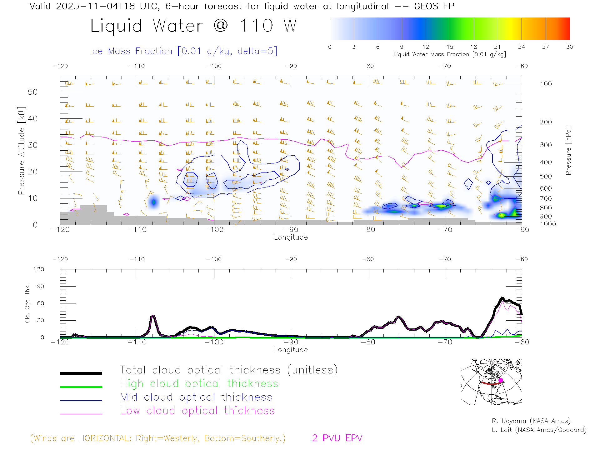 GEOS Forecast Cloud Water Content X-Section (50 N)