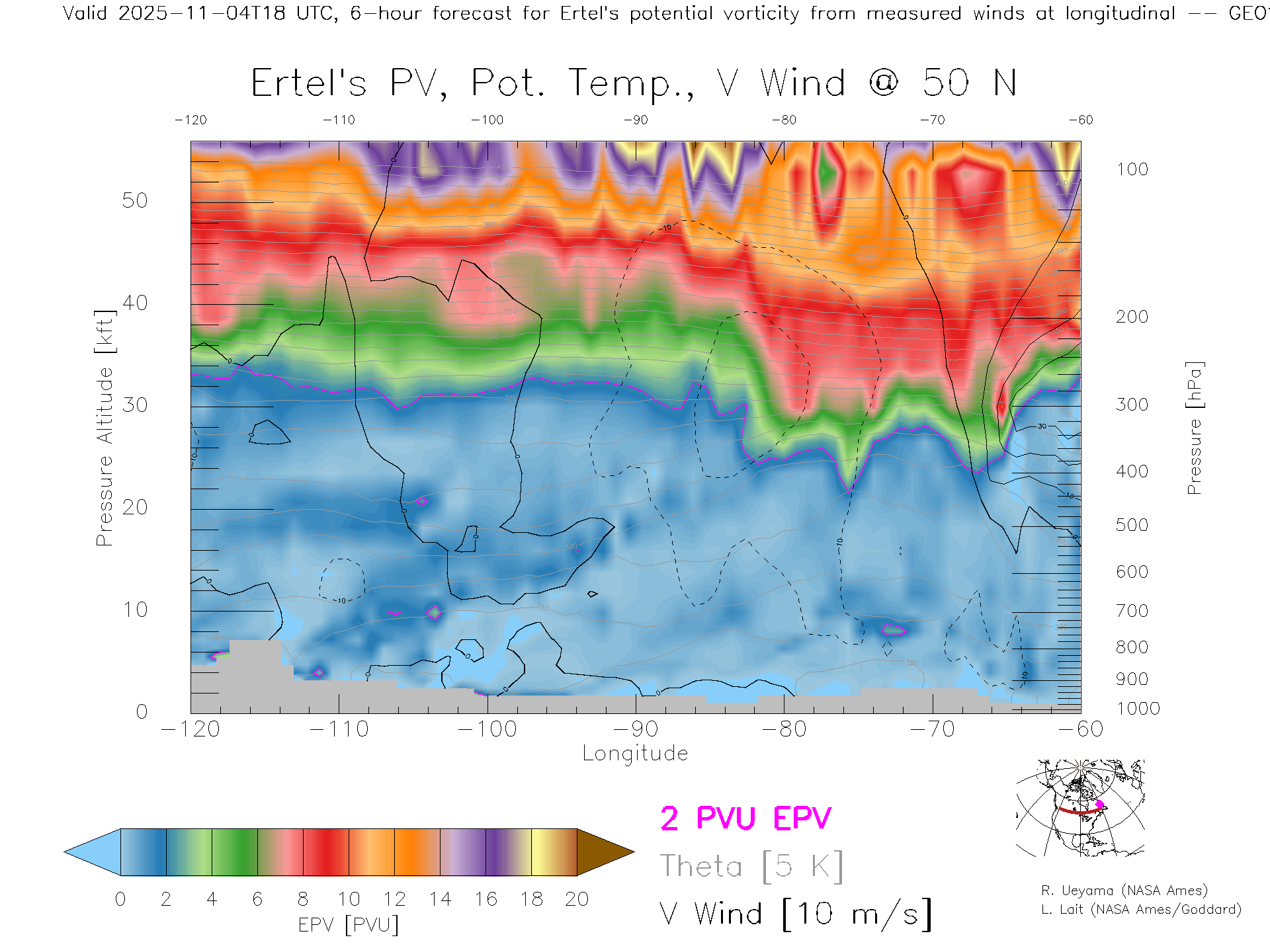 GEOS Forecast PV X-Section (50 N)