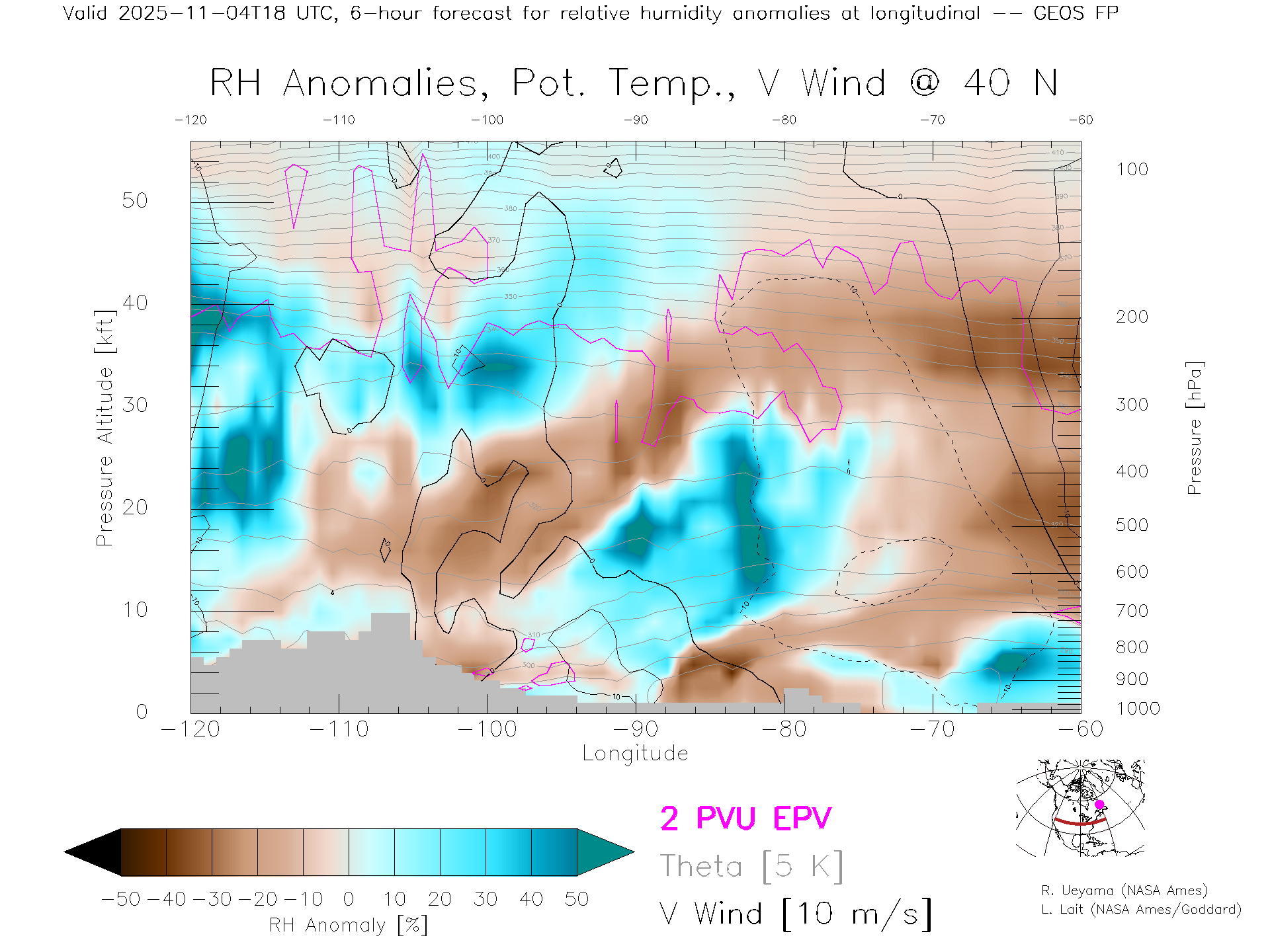 GEOS Forecast Rel. Hum. X-Section (40 N)