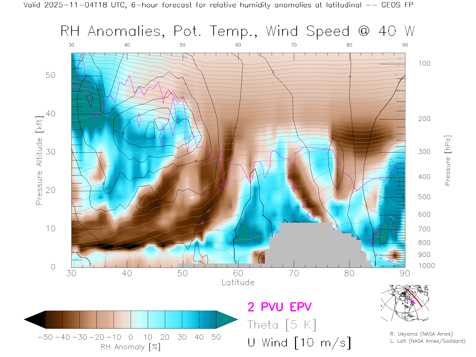 GEOS Forecast Rel. Hum. X-Section (40 W)