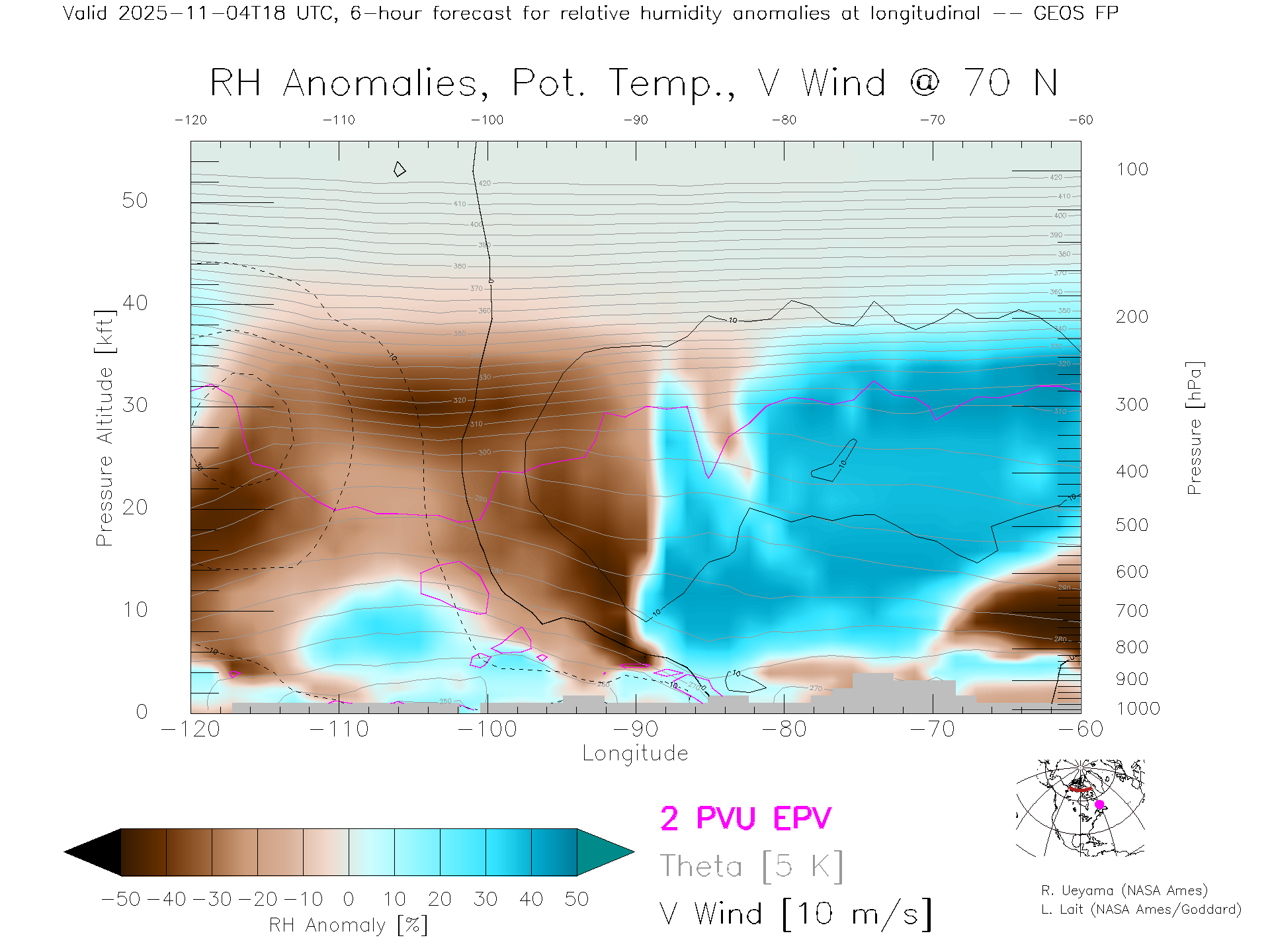 GEOS Forecast Rel. Hum. X-Section (70 N)