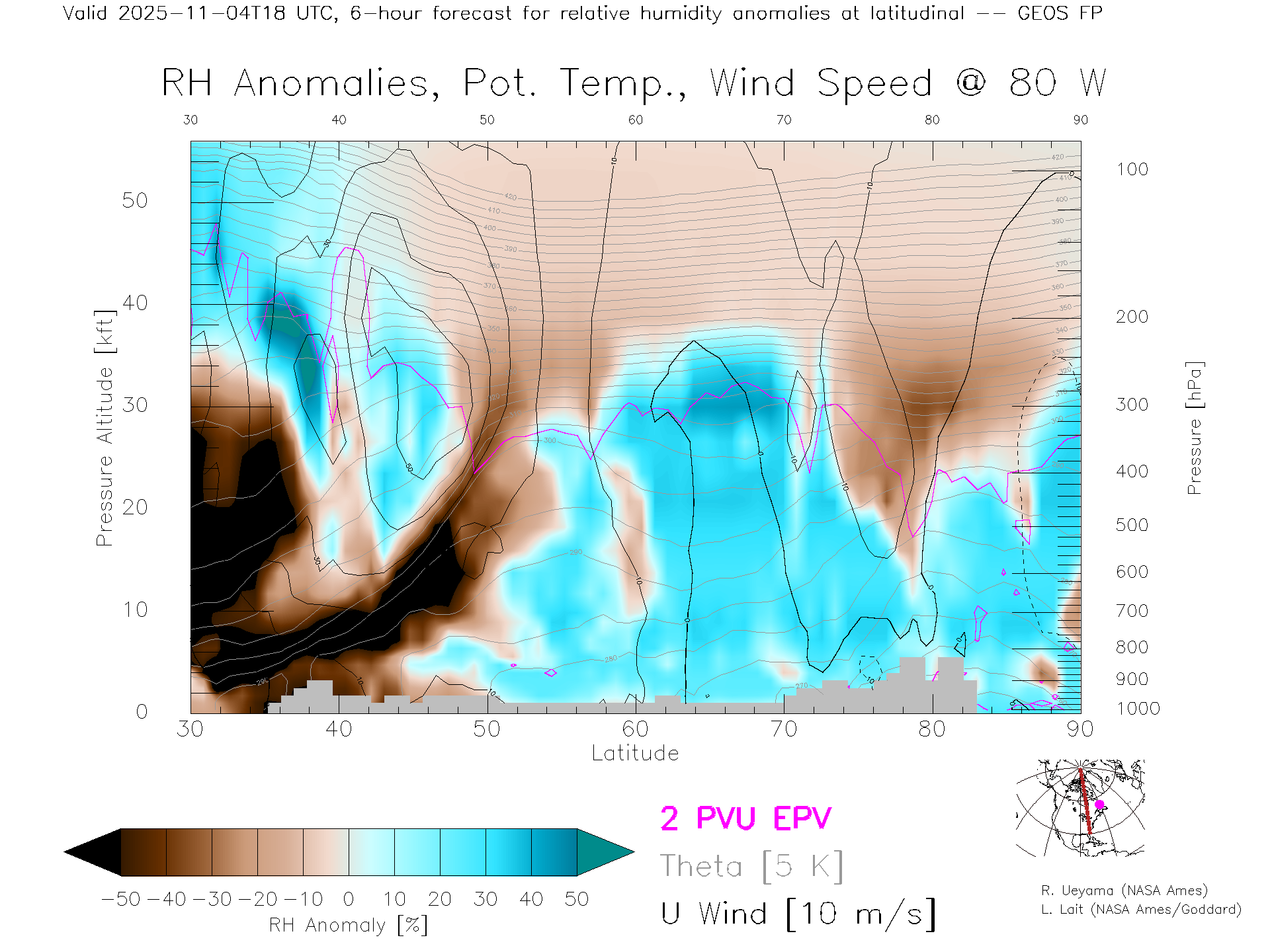 GEOS Forecast Rel. Hum. X-Section (80 W)