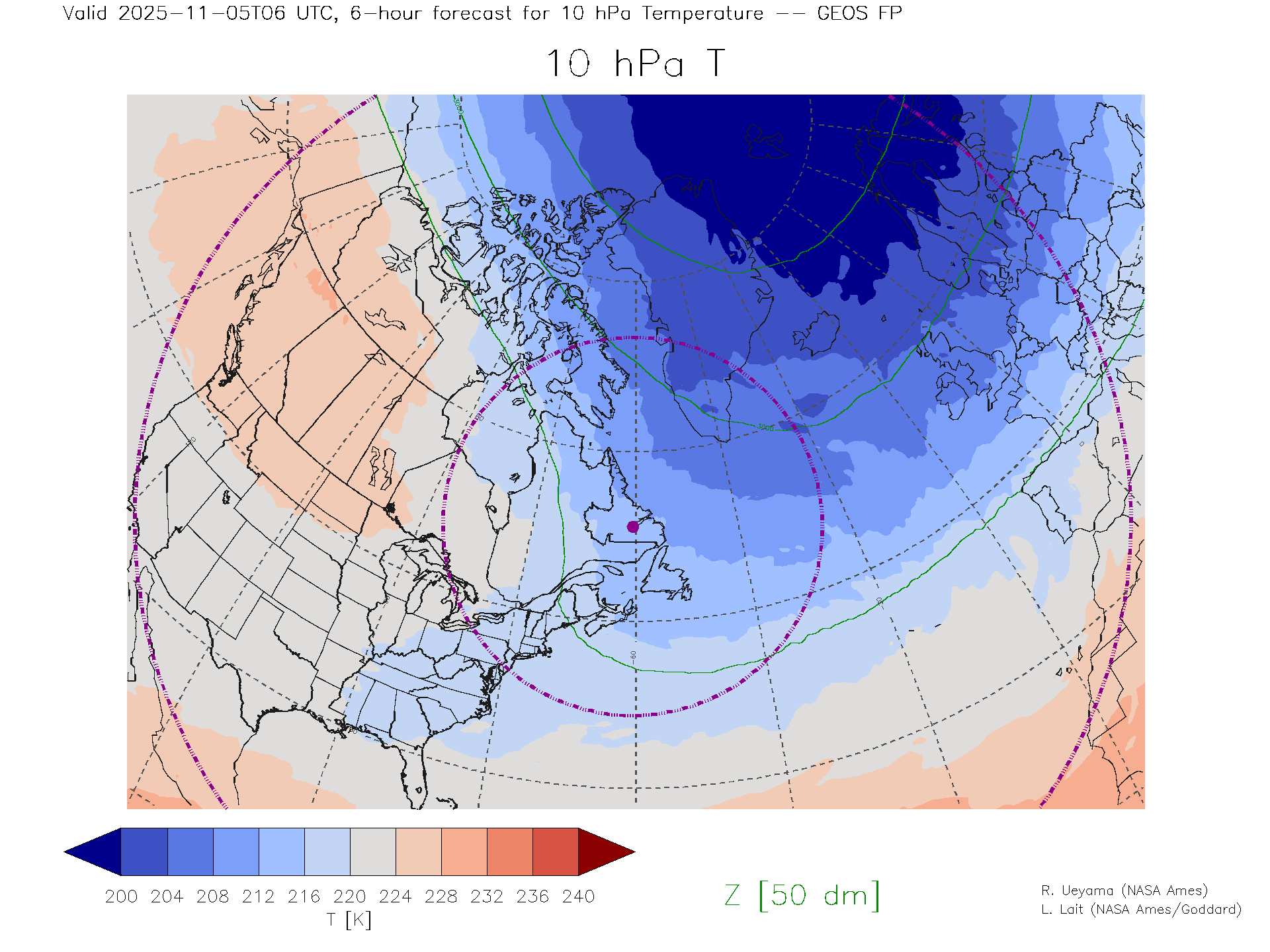 GEOS Forecast 10 hPa Temp.