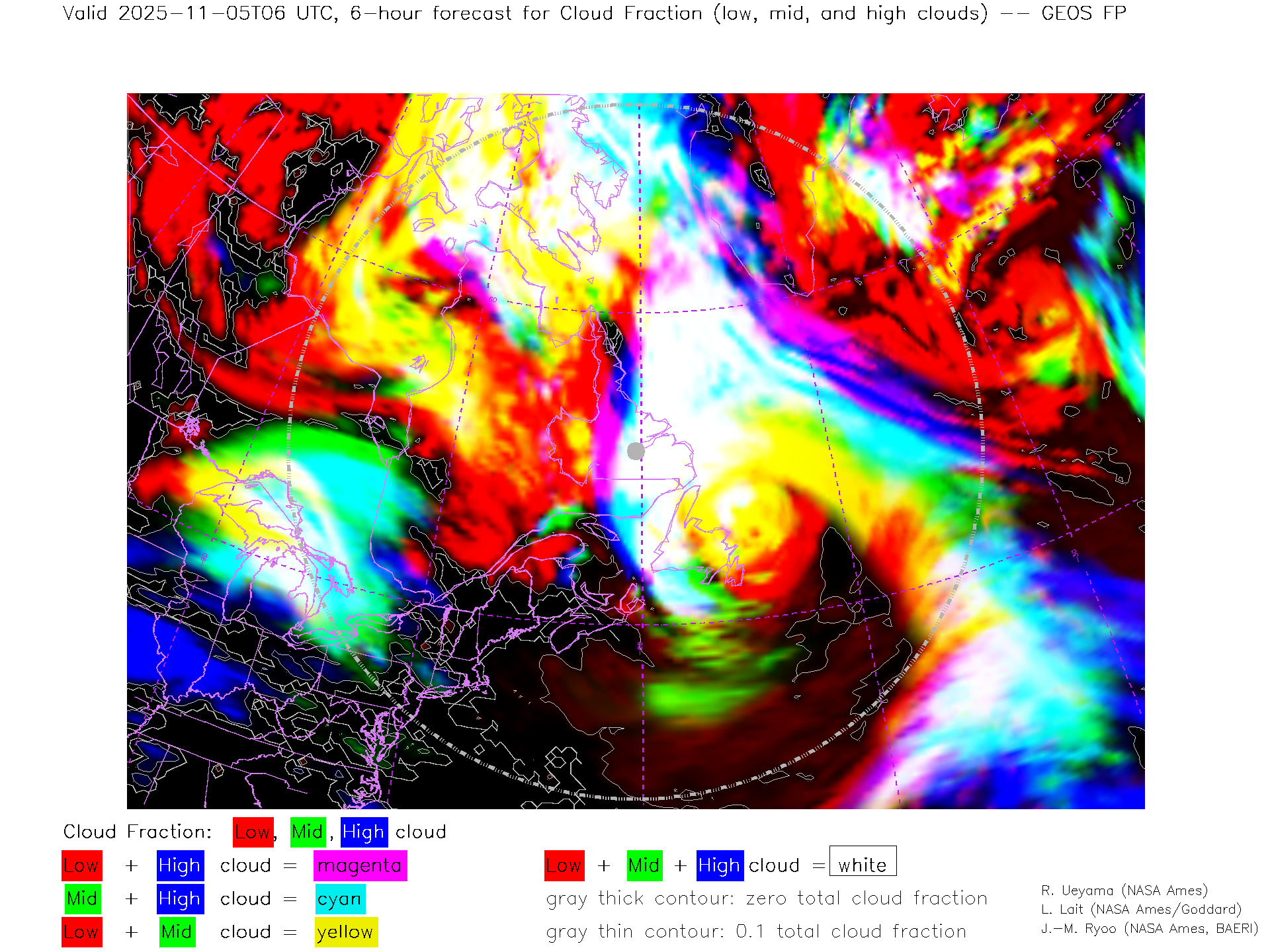 GEOS Forecast Low-, Mid- and High-level Cloud Fraction