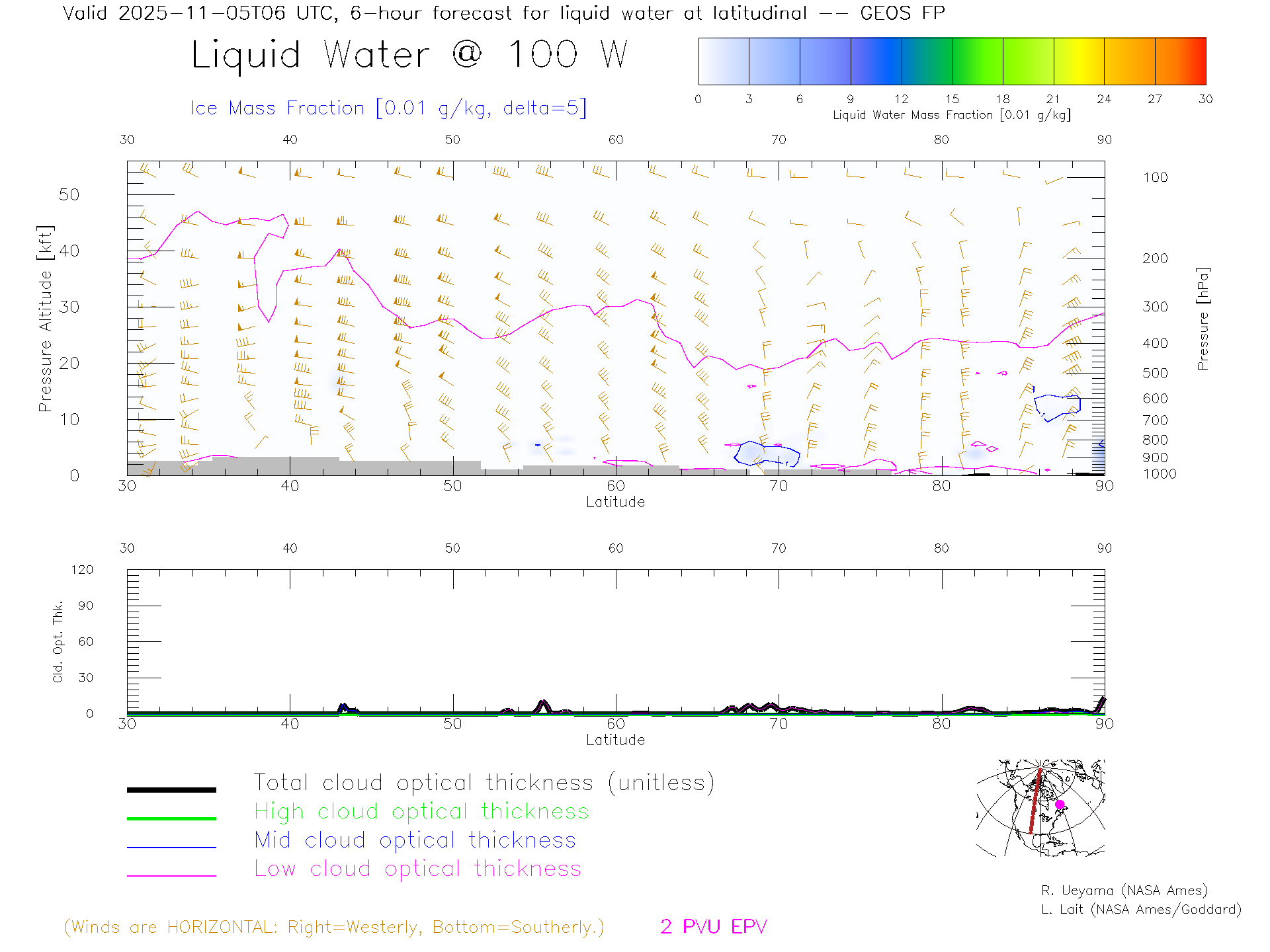 GEOS Forecast Cloud Water Content X-Section (100 W)
