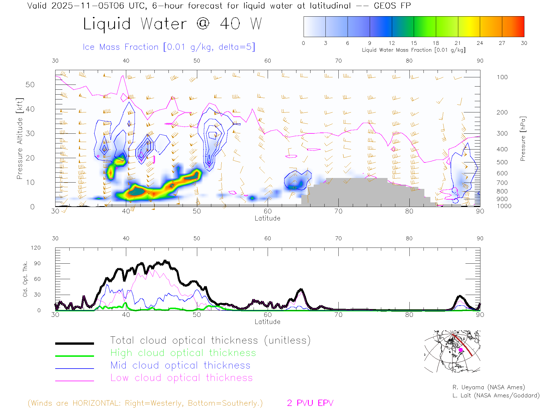 GEOS Forecast Cloud Water Content X-Section (40 W)