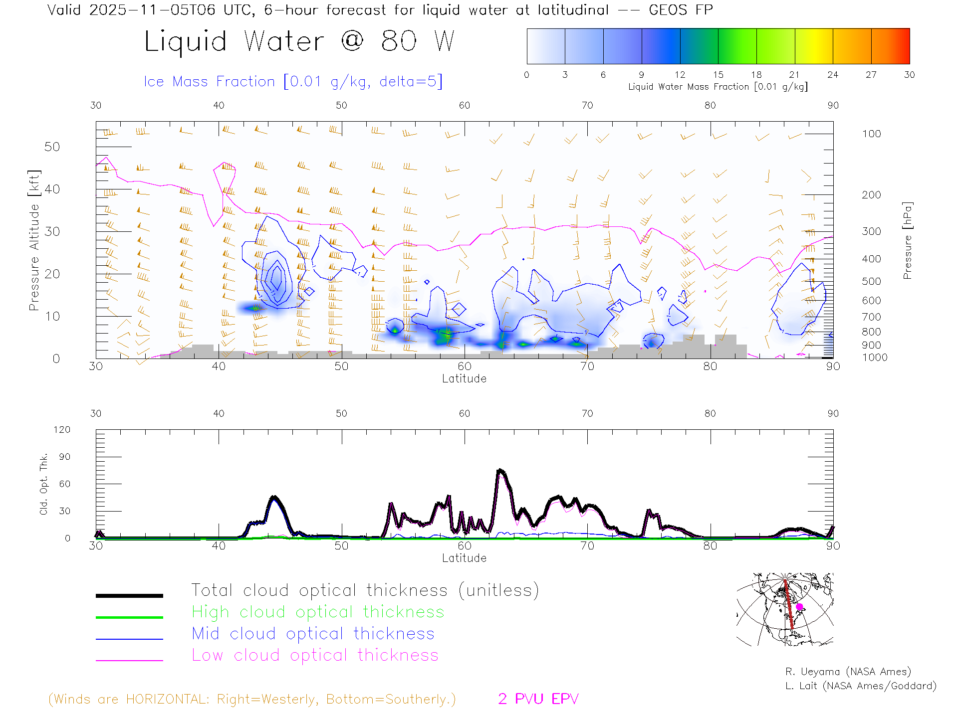 GEOS Forecast Cloud Water Content X-Section (80 W)