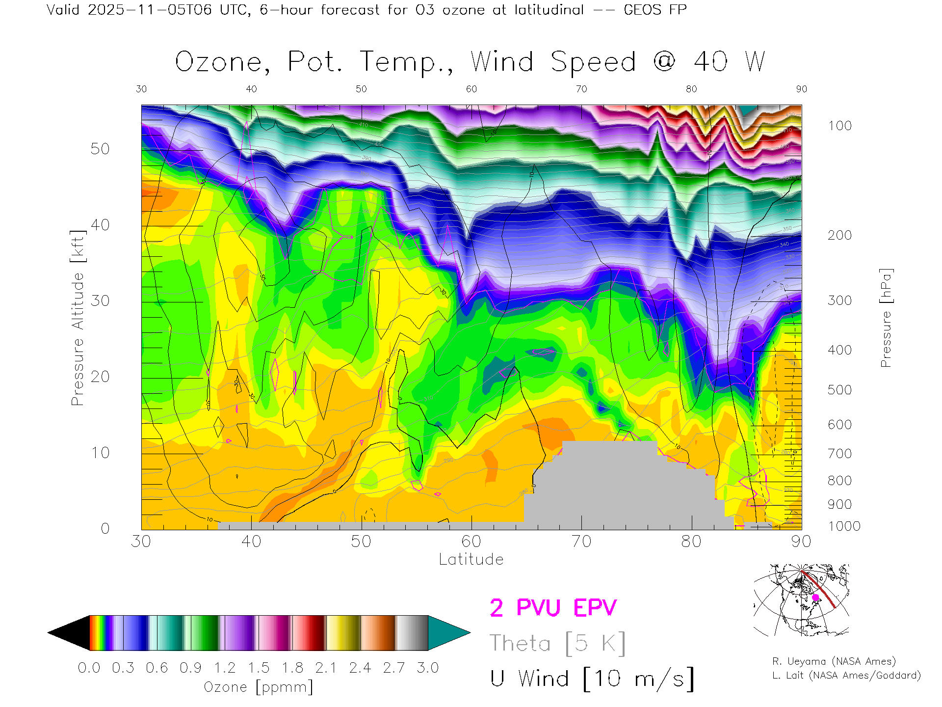 GEOS Forecast Ozone X-Section (40 W)