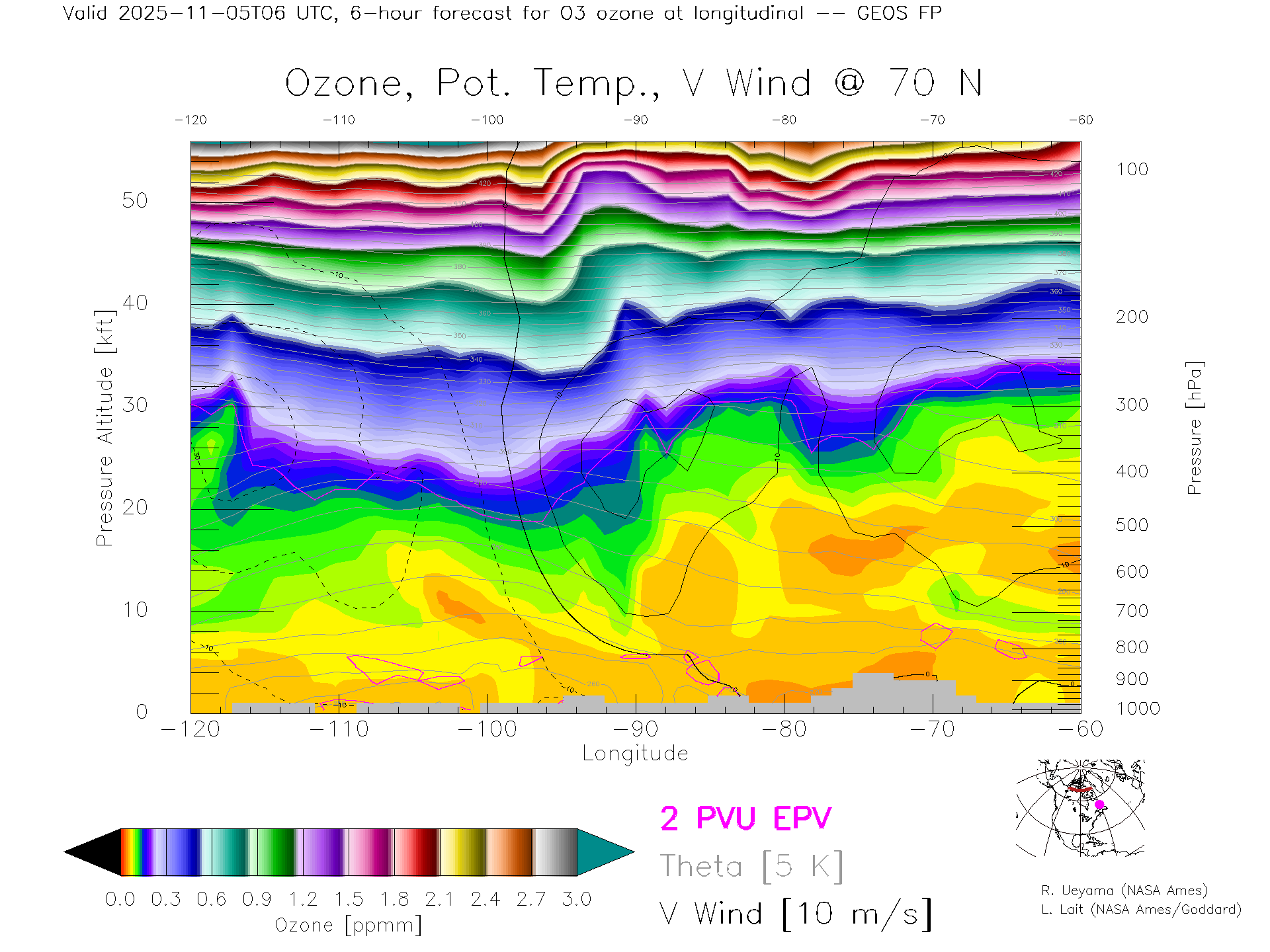 GEOS Forecast Ozone X-Section (70 N)