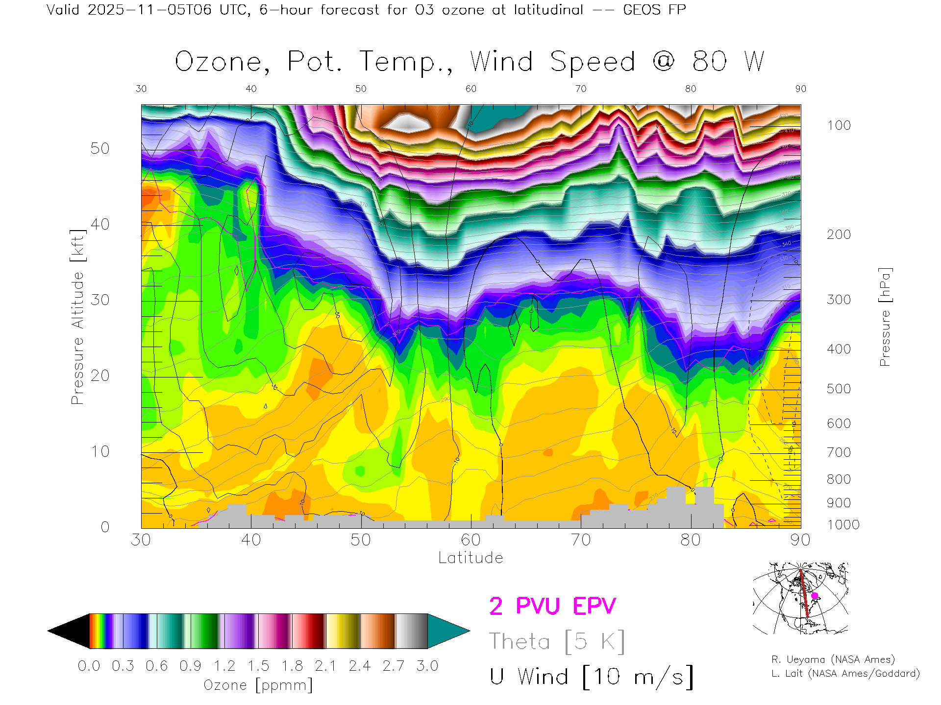 GEOS Forecast Ozone X-Section (80 W)