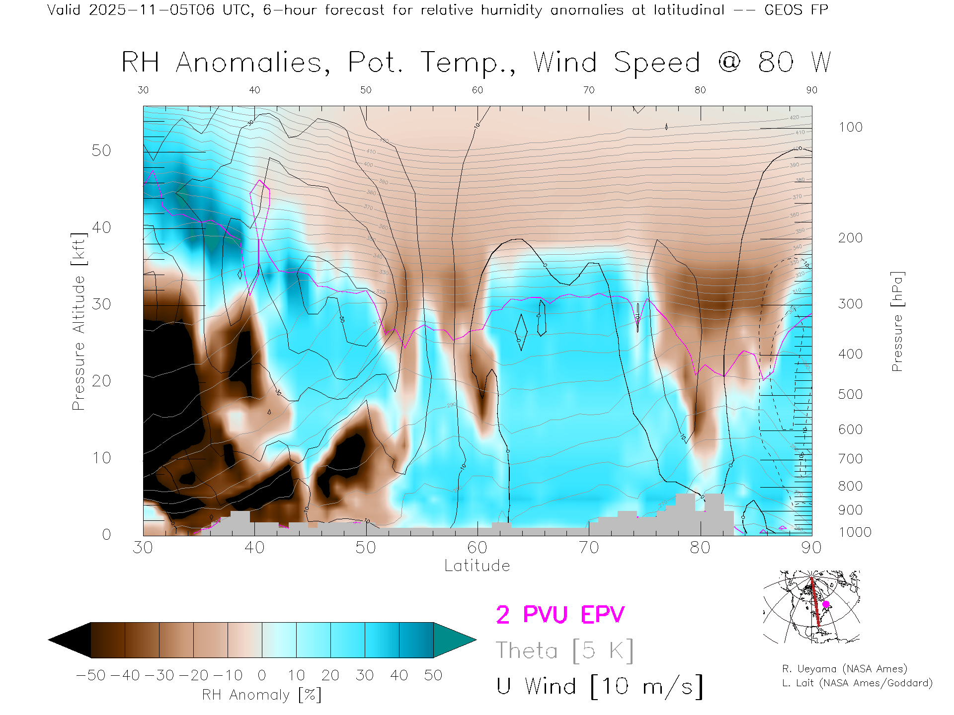 GEOS Forecast Rel. Hum. X-Section (80 W)