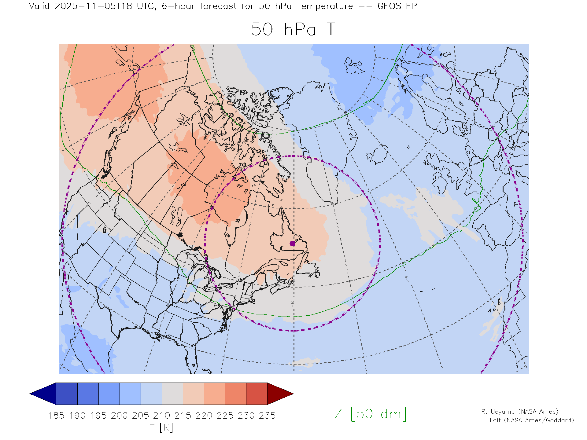 GEOS Forecast 50 hPa Temp.
