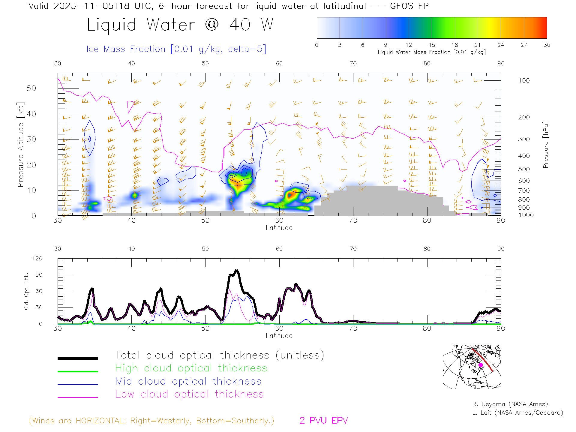 GEOS Forecast Cloud Water Content X-Section (40 W)