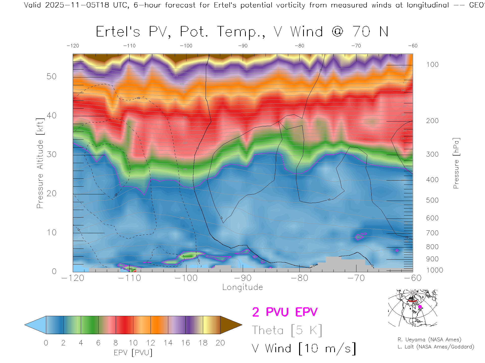 GEOS Forecast PV X-Section (70 N)