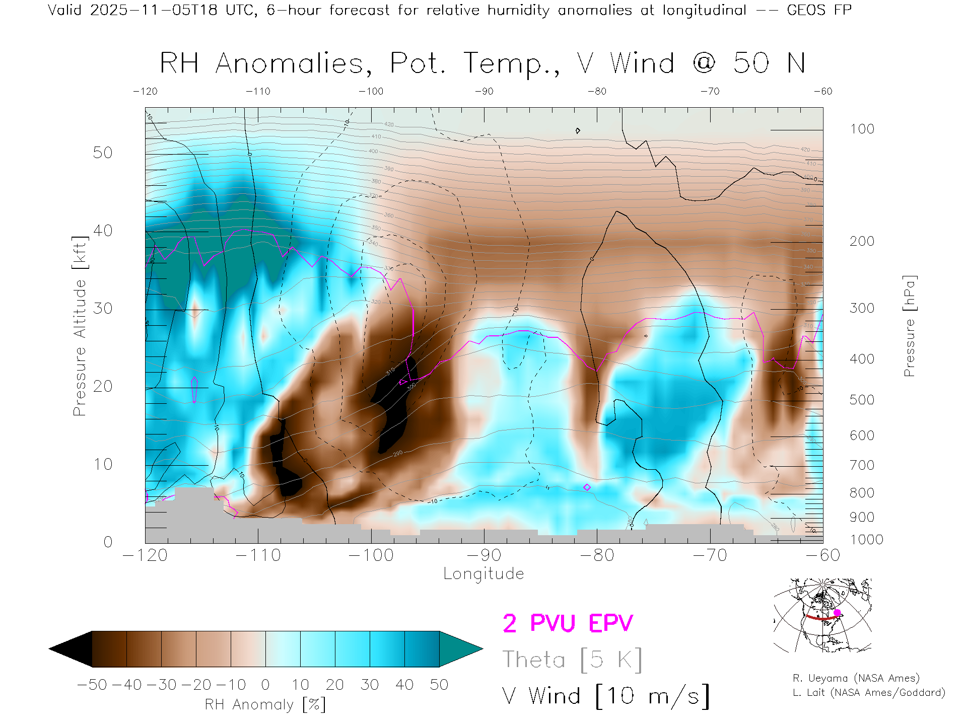 GEOS Forecast Rel. Hum. X-Section (50 N)