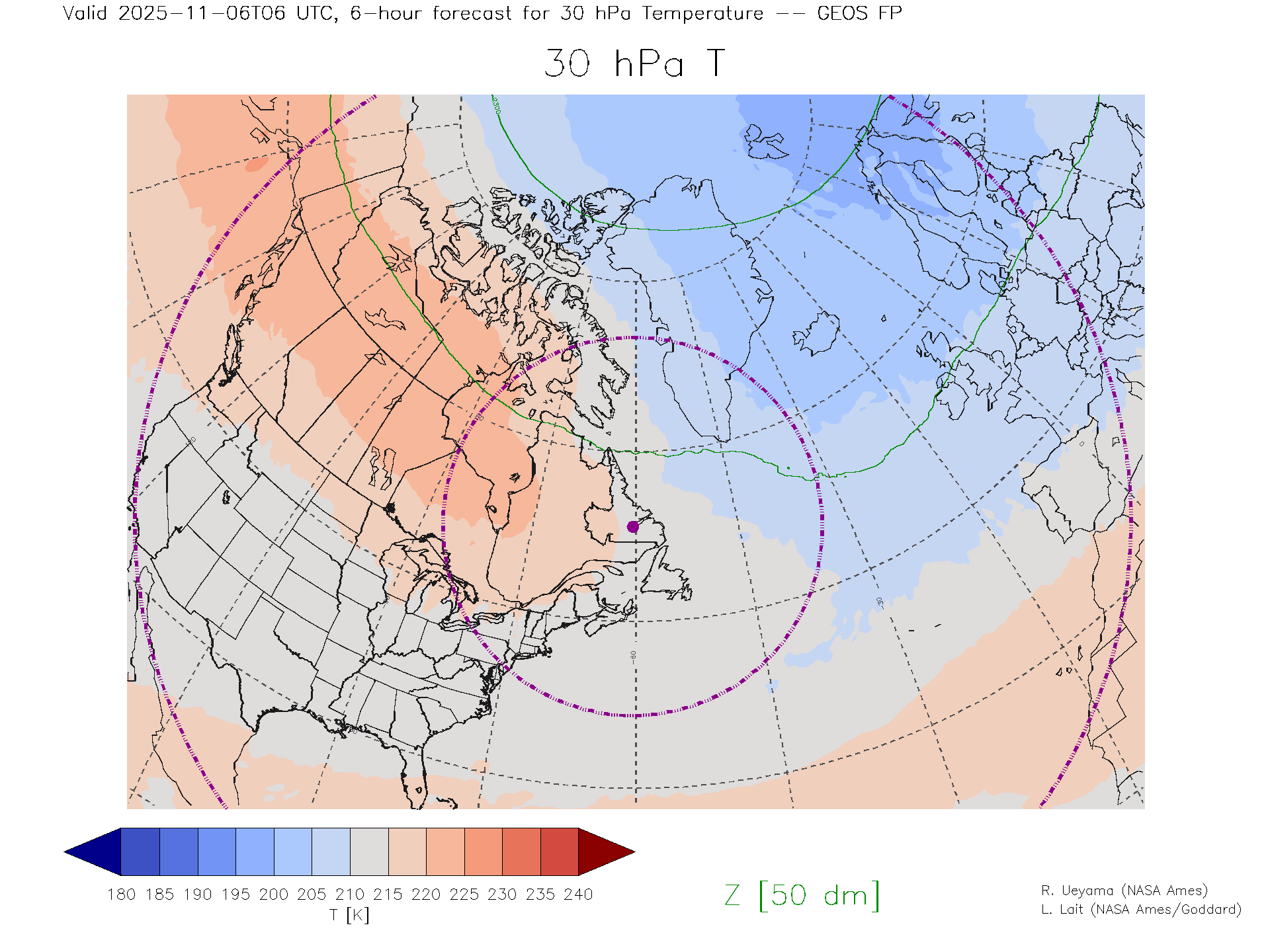 GEOS Forecast 30 hPa Temp.