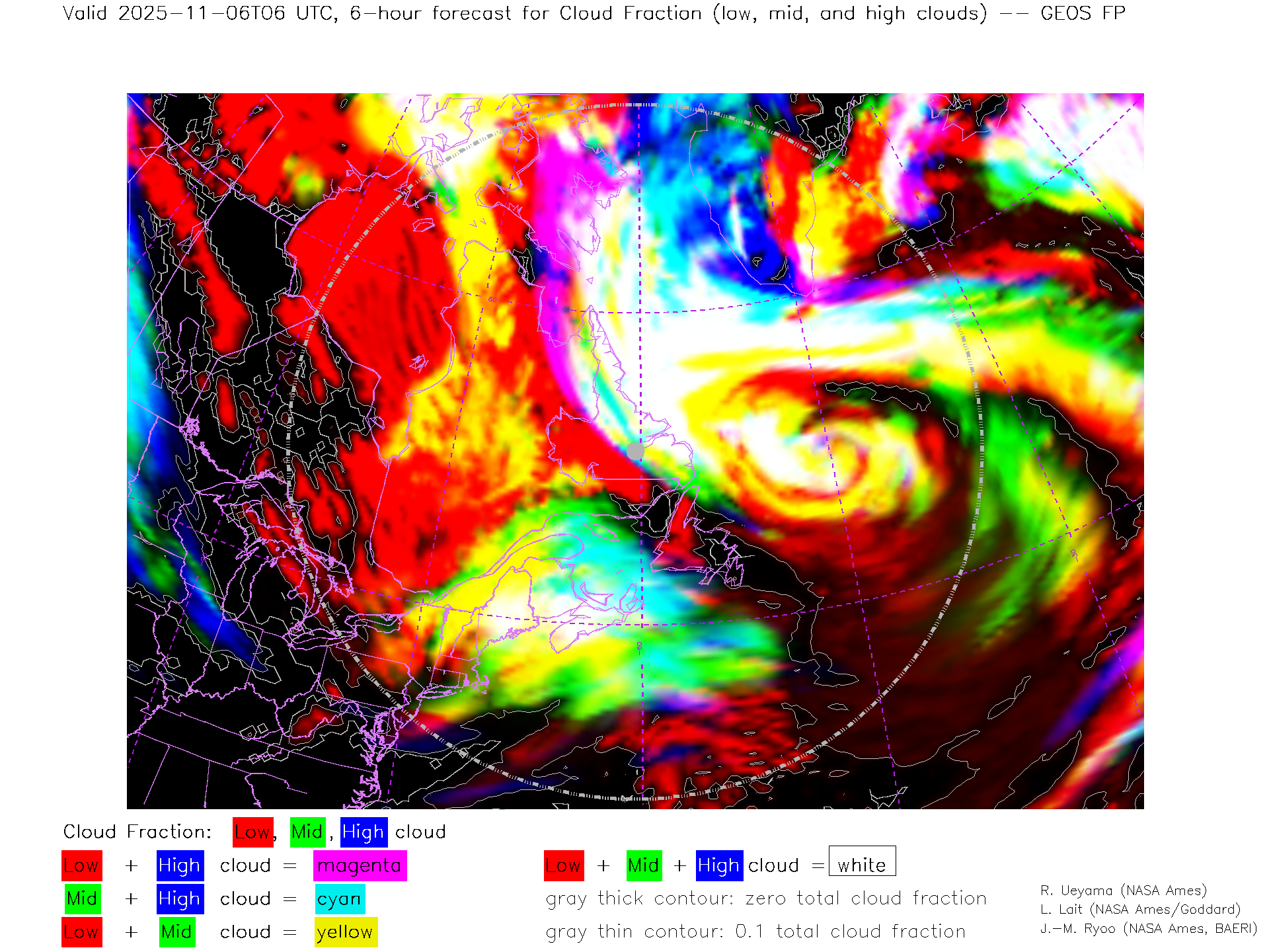 GEOS Forecast Low-, Mid- and High-level Cloud Fraction