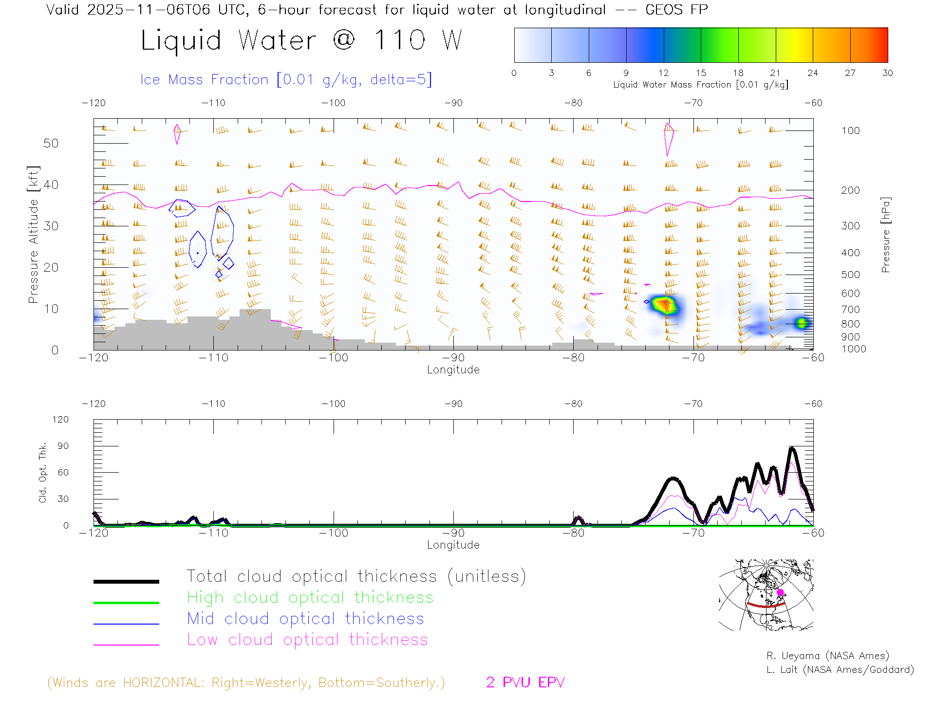 GEOS Forecast Cloud Water Content X-Section (40 N)