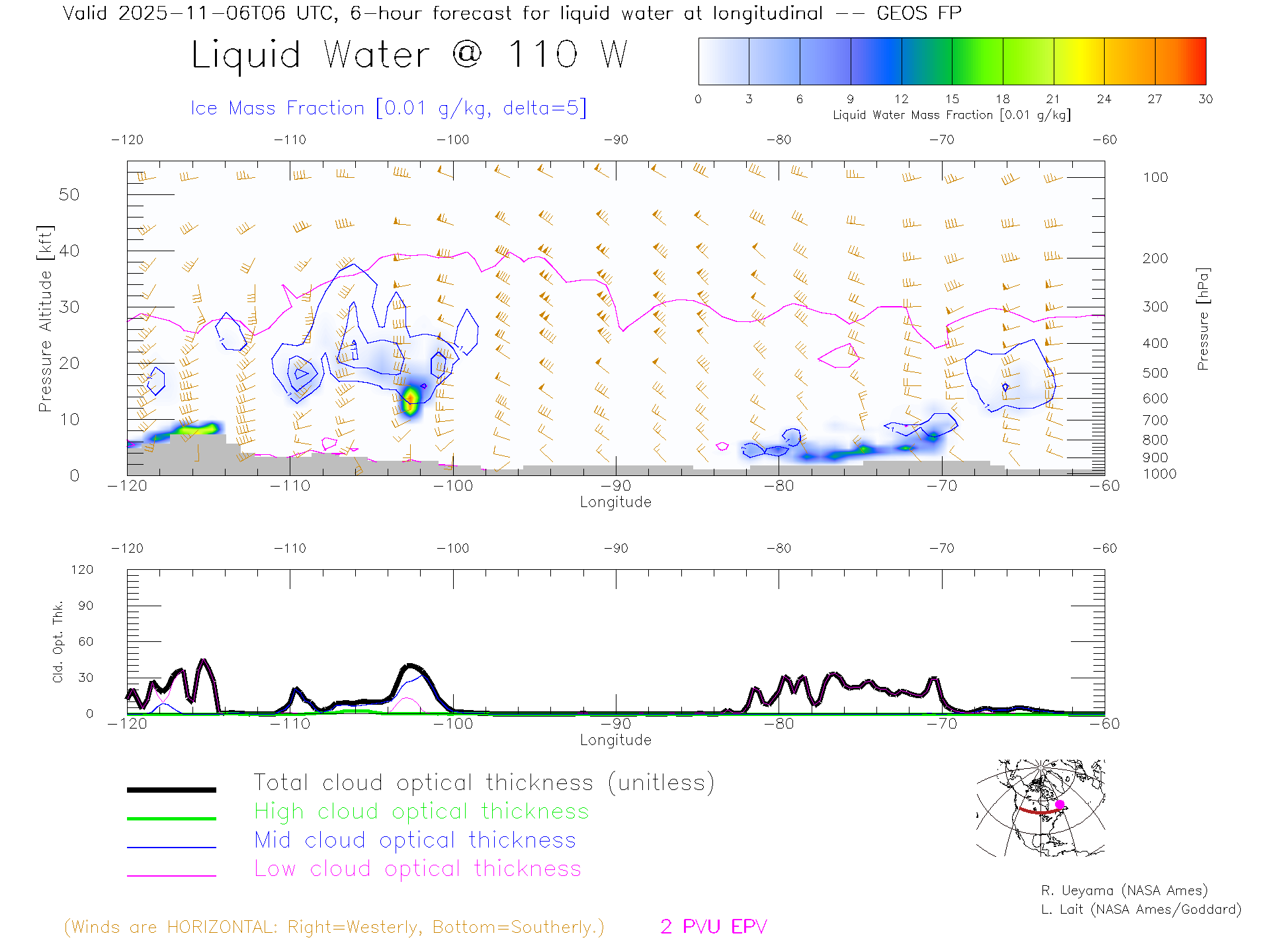 GEOS Forecast Cloud Water Content X-Section (50 N)