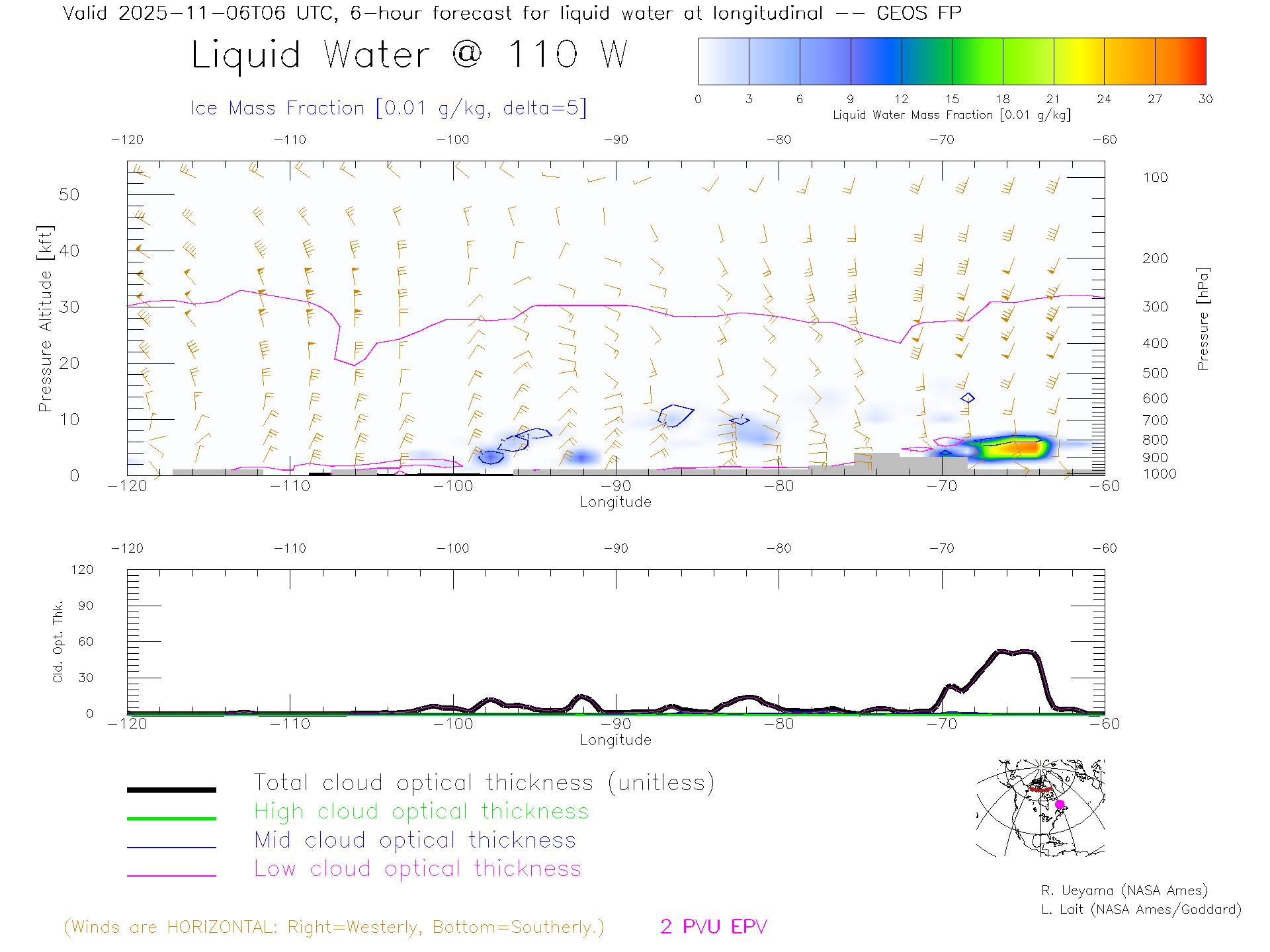 GEOS Forecast Cloud Water Content X-Section (70 N)