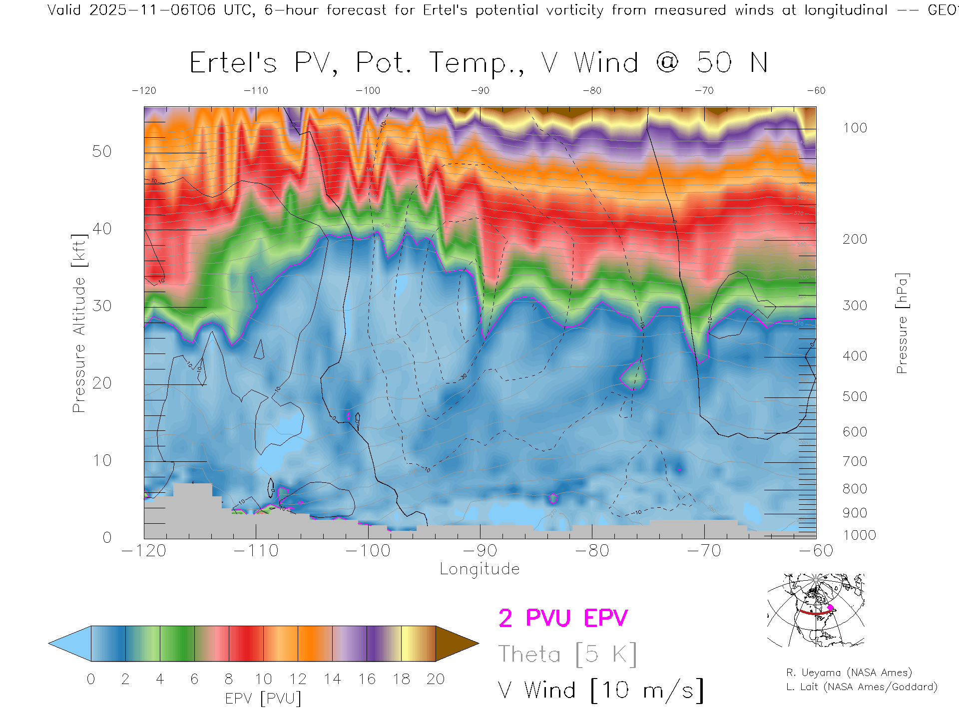 GEOS Forecast PV X-Section (50 N)