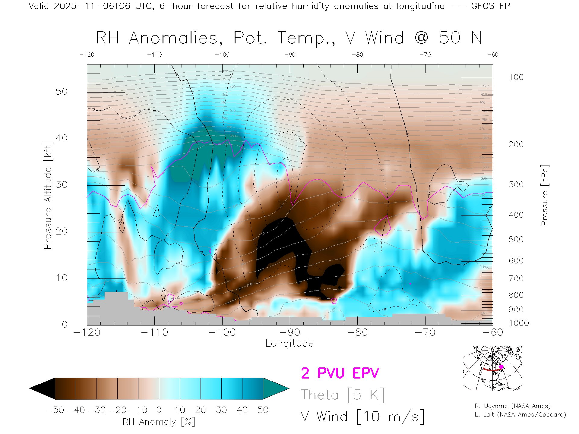 GEOS Forecast Rel. Hum. X-Section (50 N)