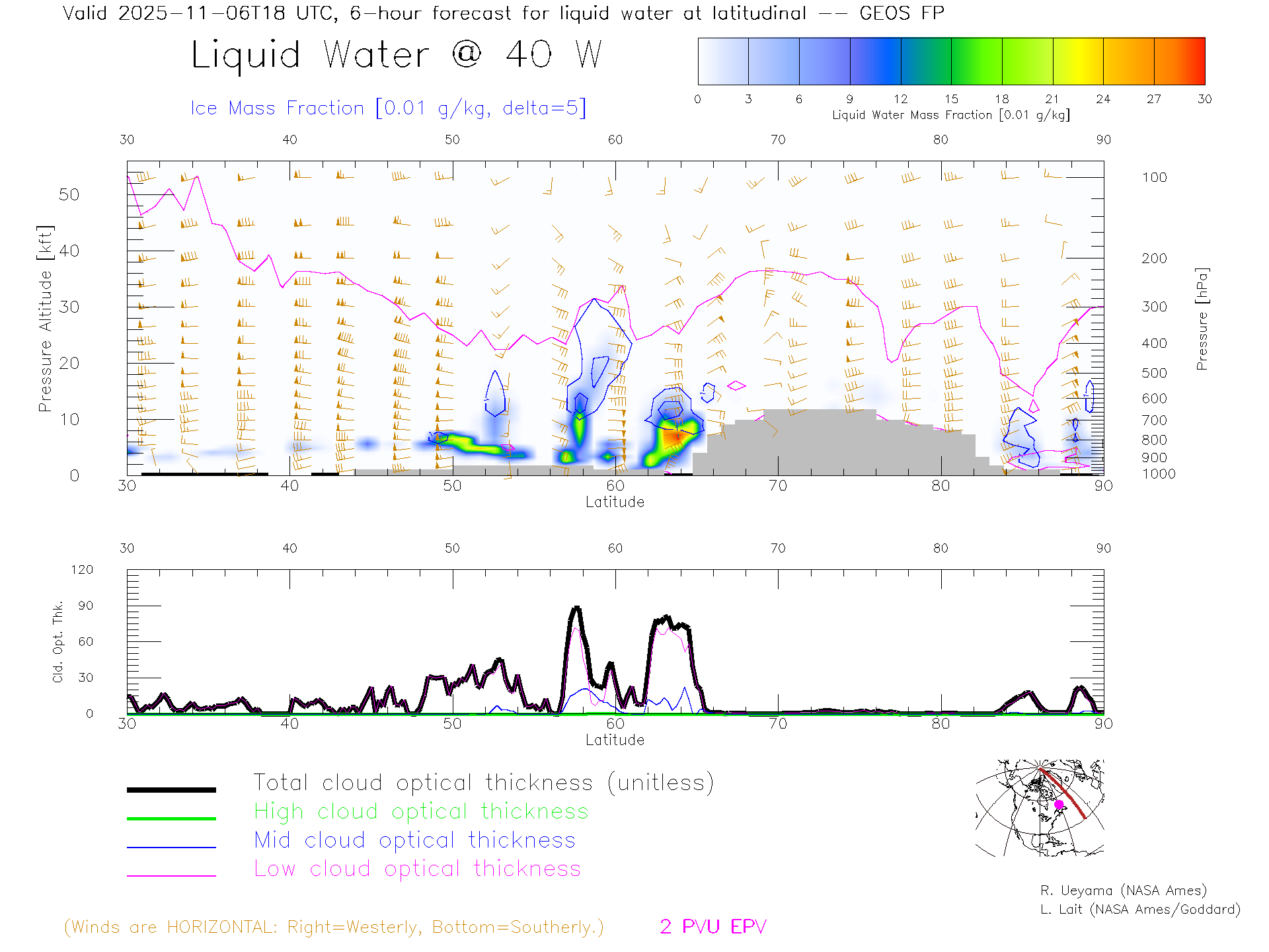 GEOS Forecast Cloud Water Content X-Section (40 W)