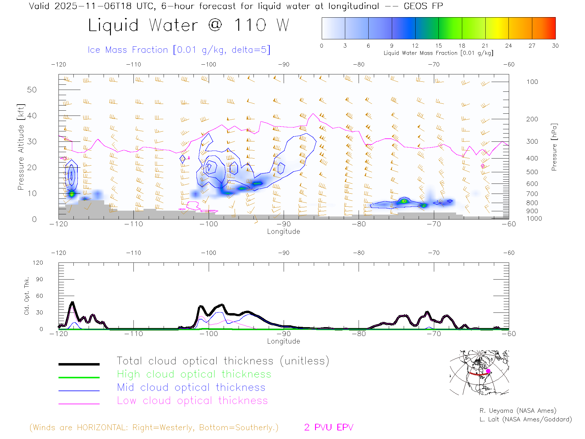 GEOS Forecast Cloud Water Content X-Section (50 N)
