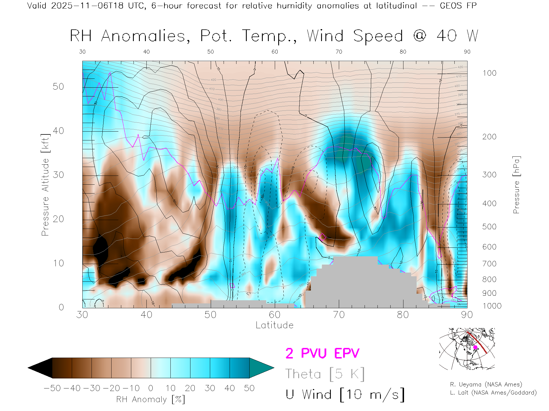 GEOS Forecast Rel. Hum. X-Section (40 W)