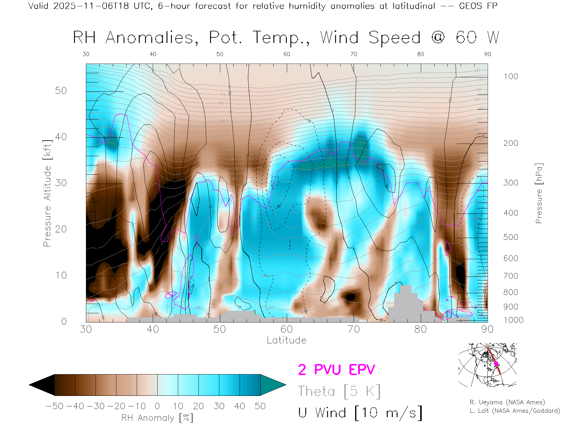 GEOS Forecast Rel. Hum. X-Section (60 W)