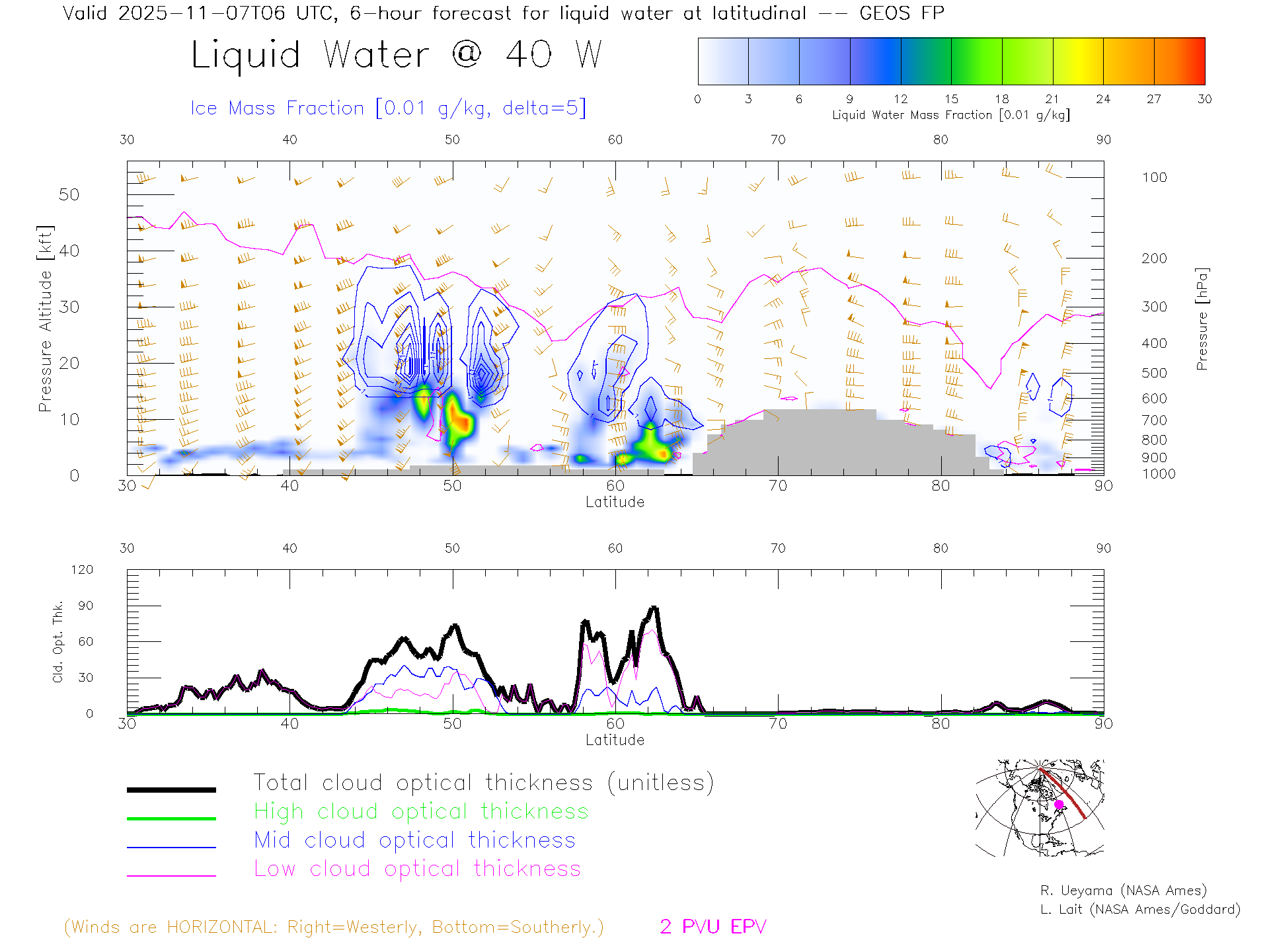 GEOS Forecast Cloud Water Content X-Section (40 W)