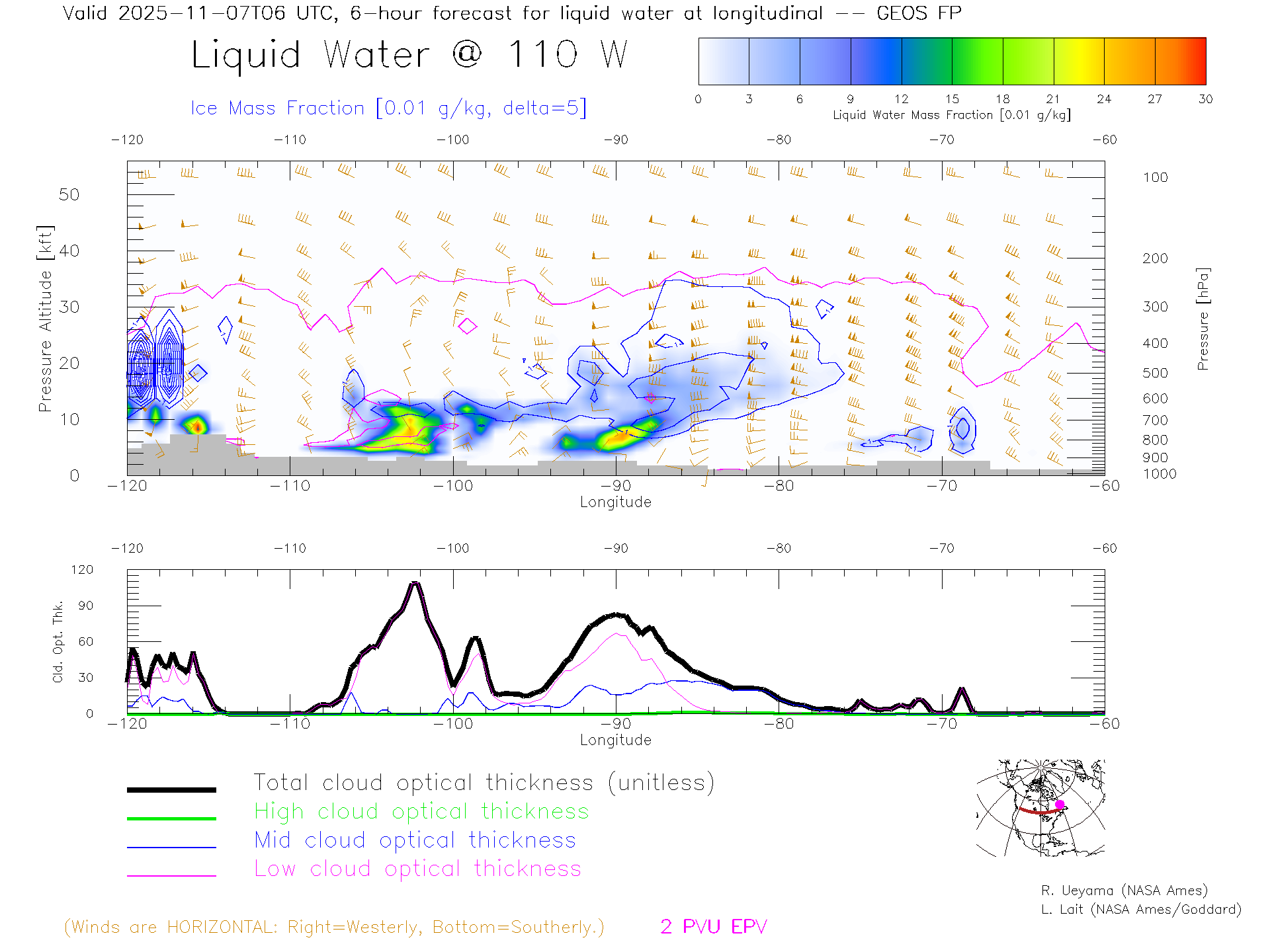 GEOS Forecast Cloud Water Content X-Section (50 N)