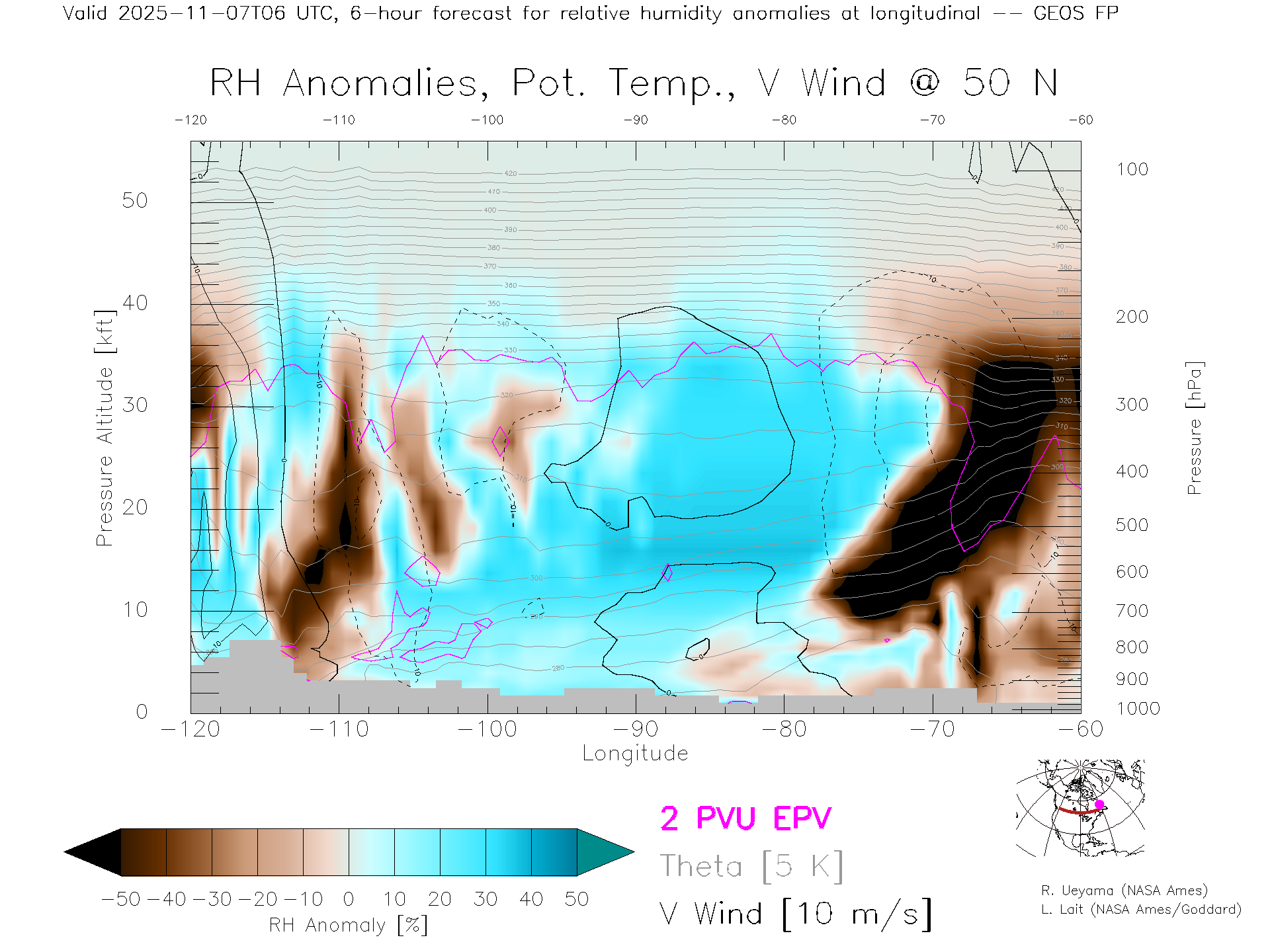 GEOS Forecast Rel. Hum. X-Section (50 N)