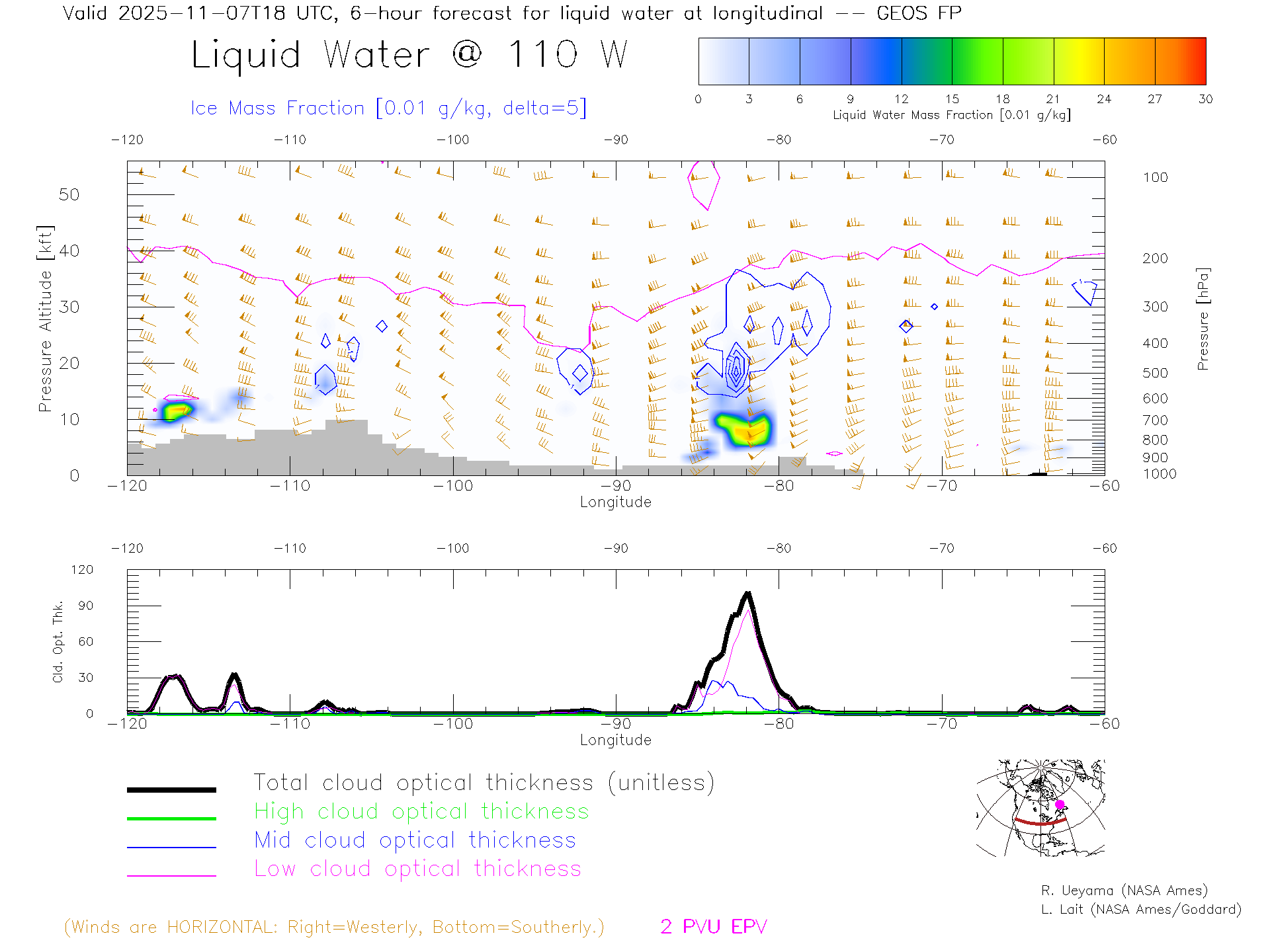 GEOS Forecast Cloud Water Content X-Section (40 N)