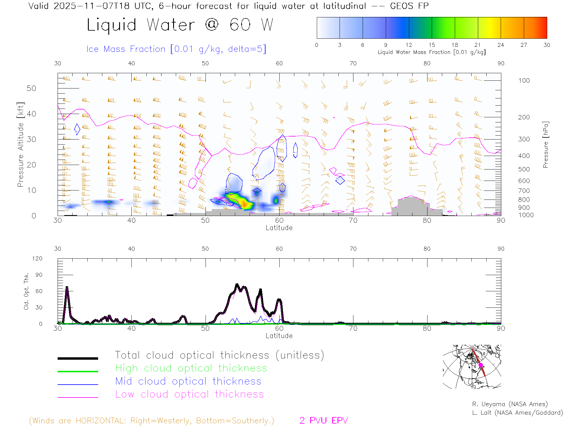 GEOS Forecast Cloud Water Content X-Section (60 W)