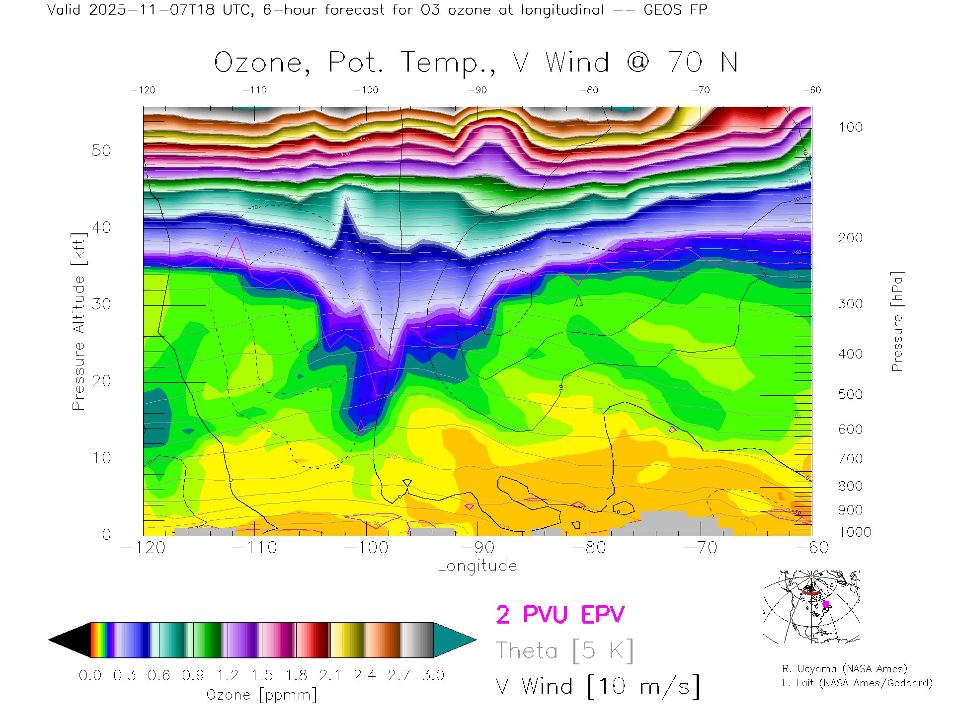 GEOS Forecast Ozone X-Section (70 N)