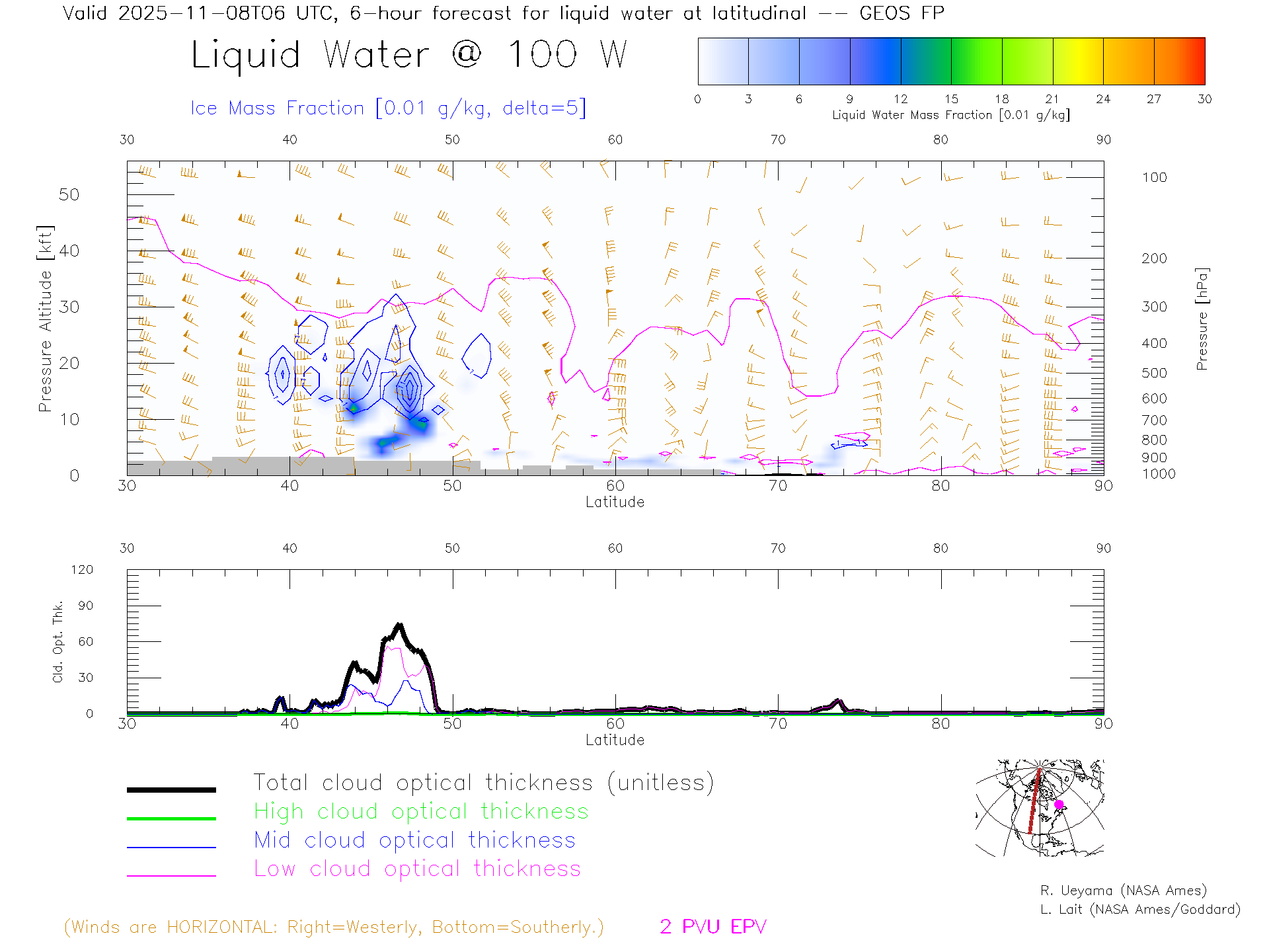 GEOS Forecast Cloud Water Content X-Section (100 W)