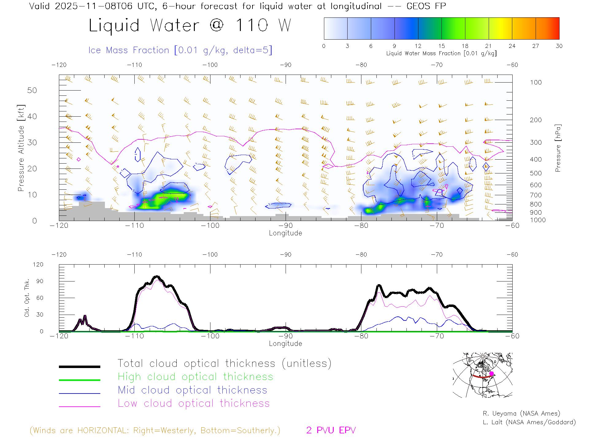 GEOS Forecast Cloud Water Content X-Section (50 N)