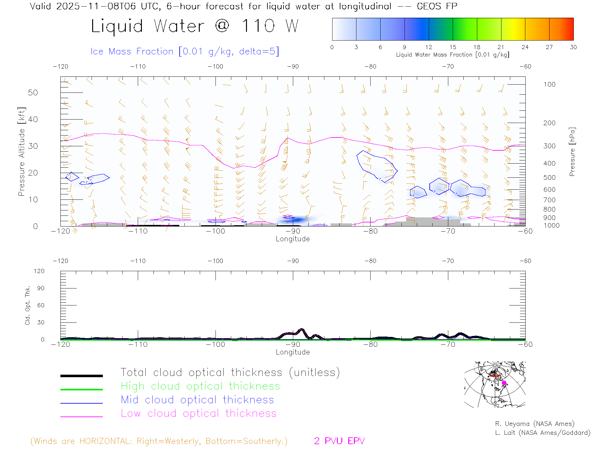 GEOS Forecast Cloud Water Content X-Section (70 N)