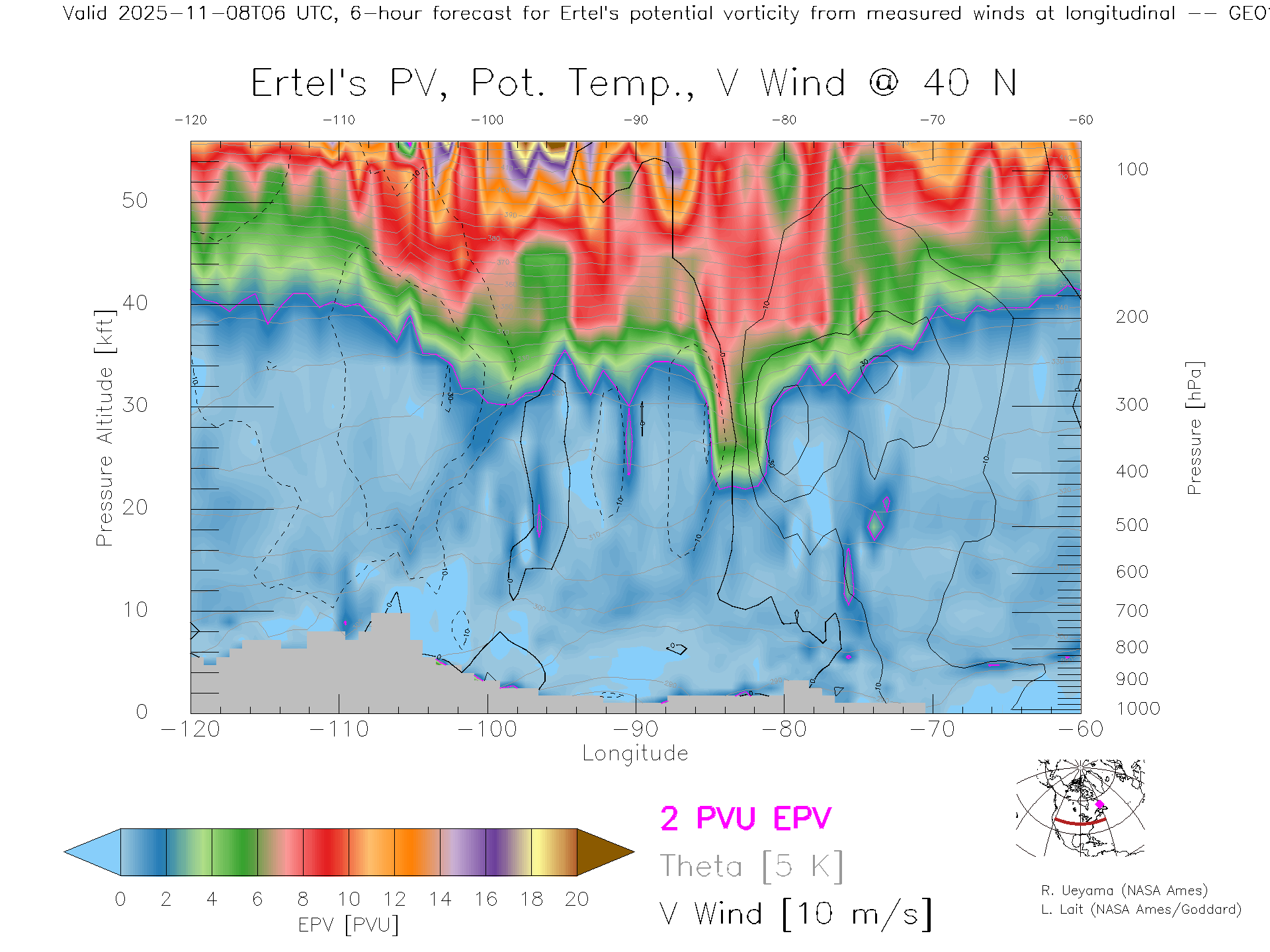 GEOS Forecast PV X-Section (40 N)