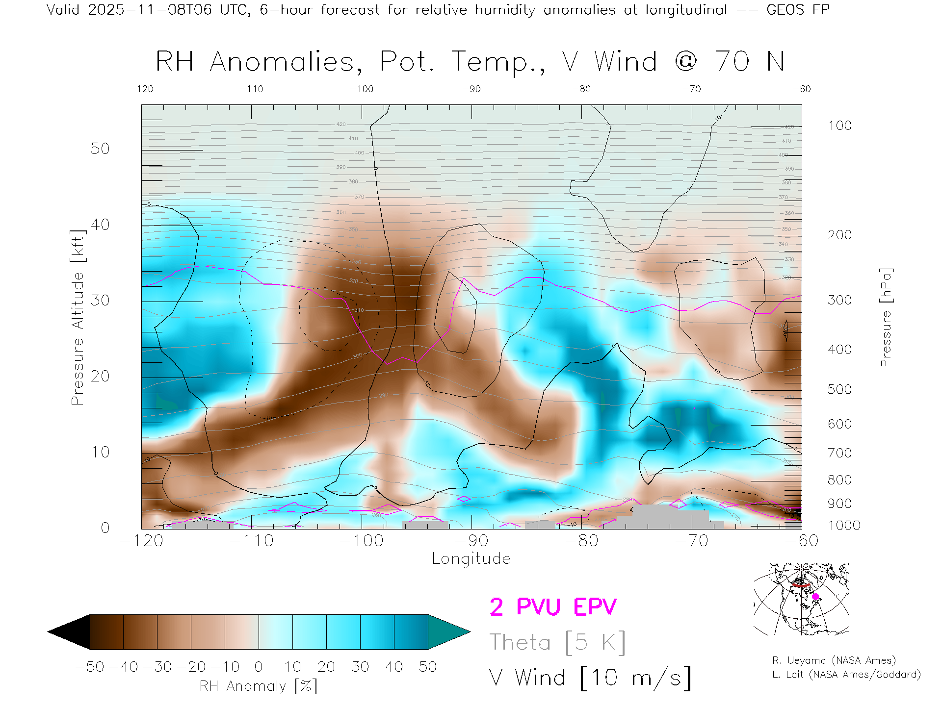 GEOS Forecast Rel. Hum. X-Section (70 N)