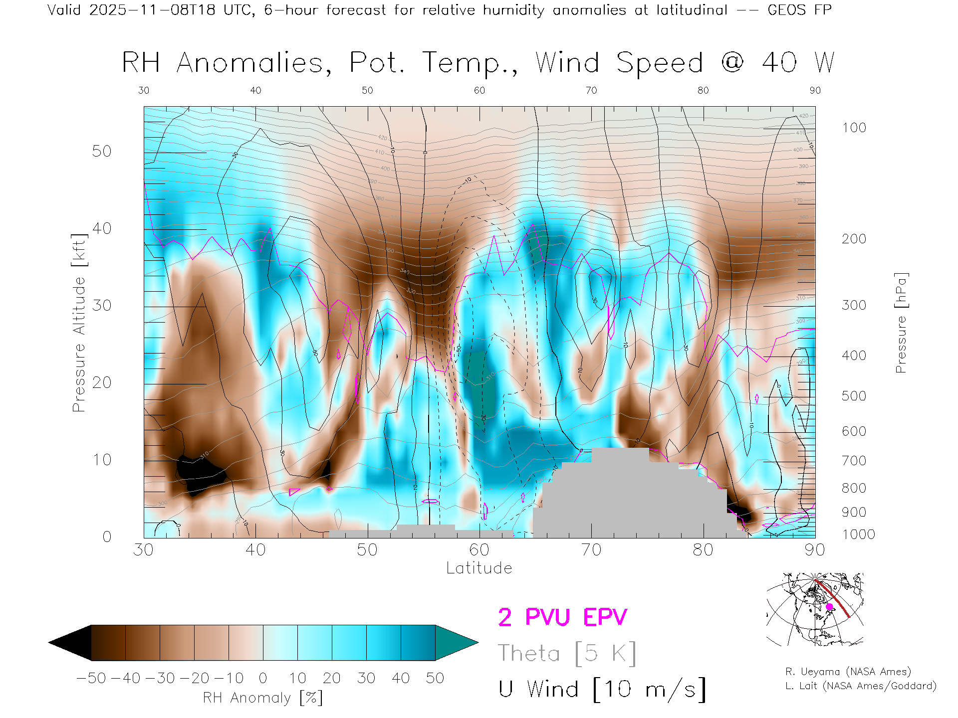 GEOS Forecast Rel. Hum. X-Section (40 W)