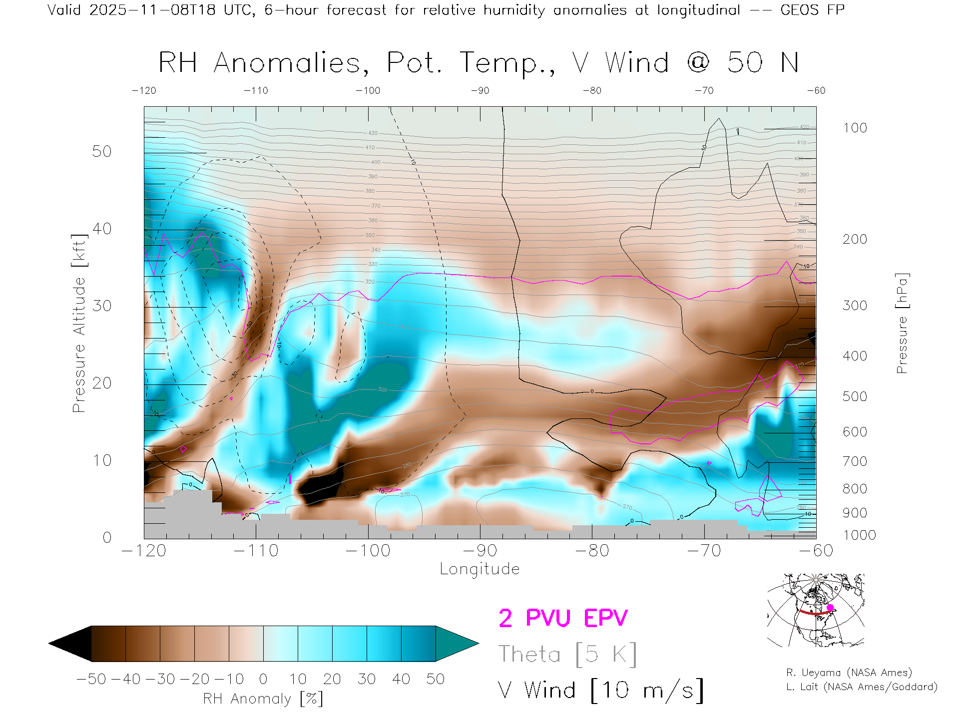 GEOS Forecast Rel. Hum. X-Section (50 N)