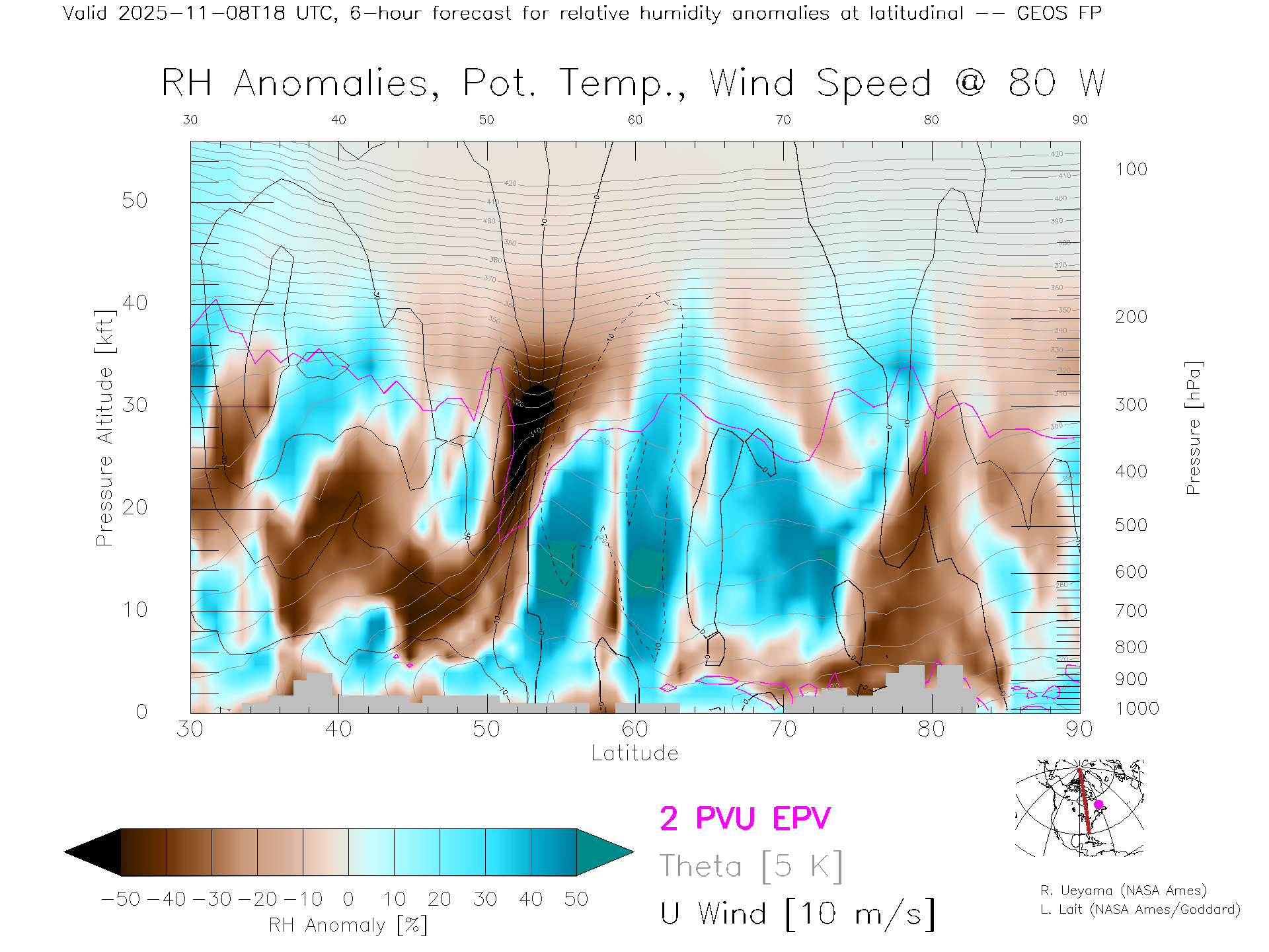 GEOS Forecast Rel. Hum. X-Section (80 W)