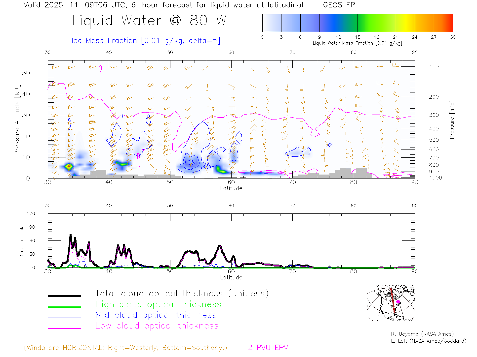 GEOS Forecast Cloud Water Content X-Section (80 W)