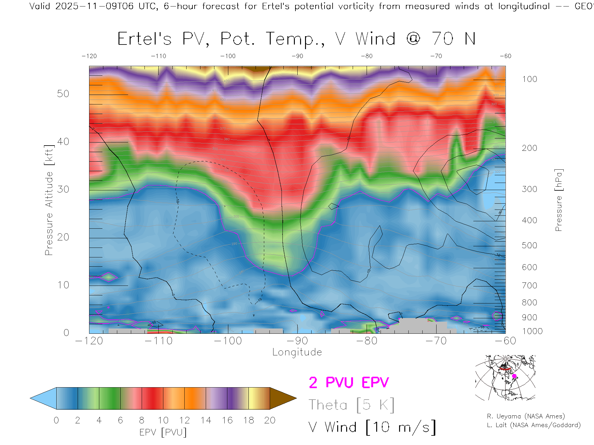 GEOS Forecast PV X-Section (70 N)