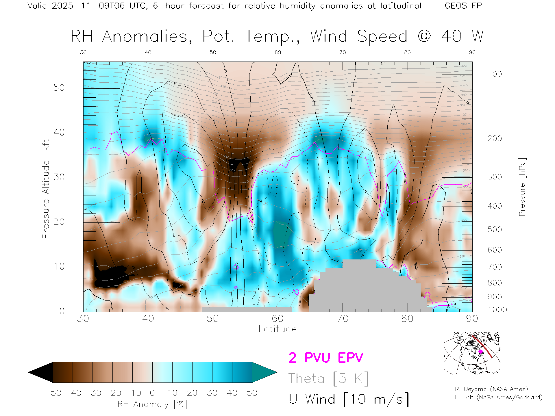 GEOS Forecast Rel. Hum. X-Section (40 W)