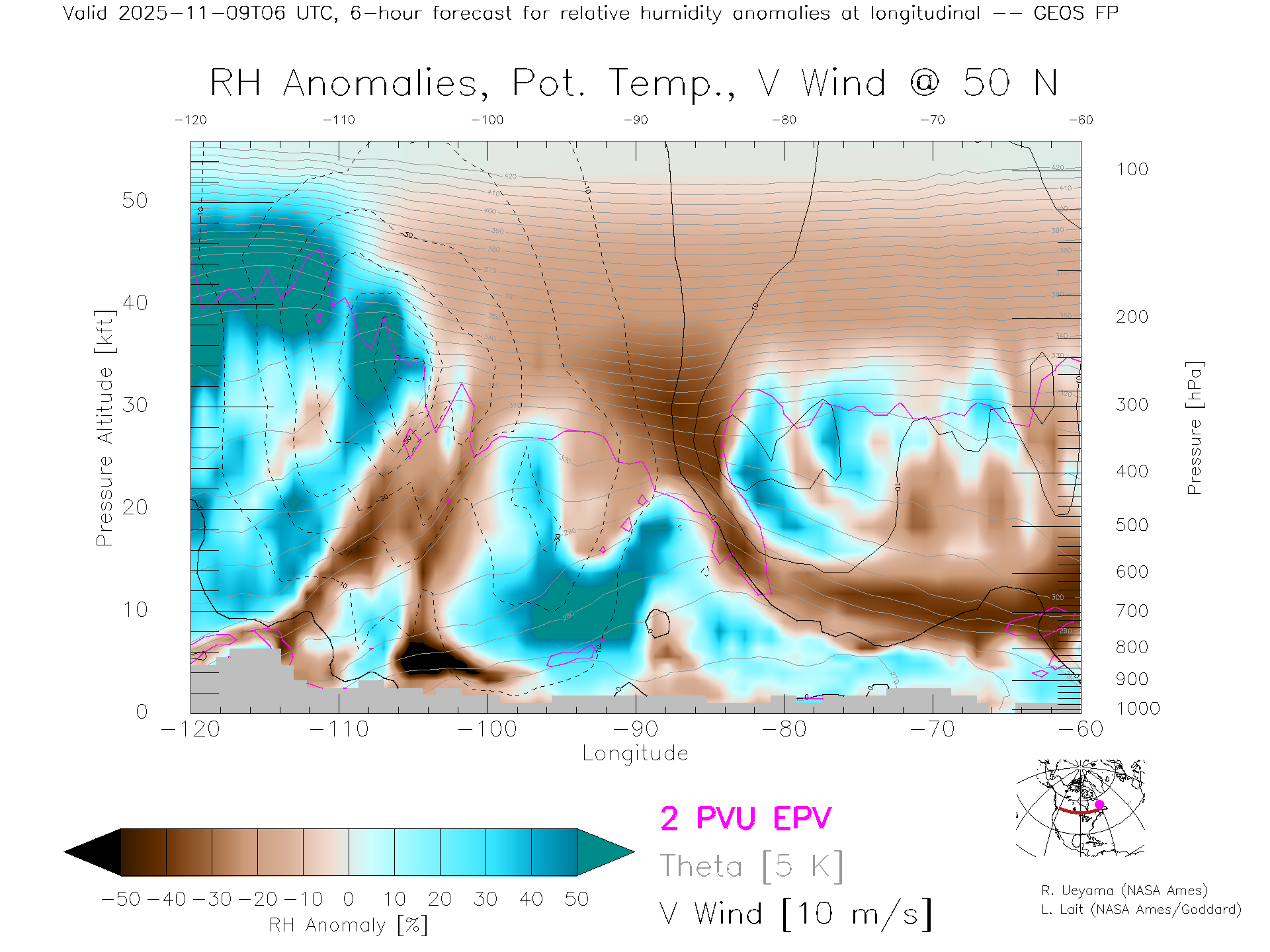 GEOS Forecast Rel. Hum. X-Section (50 N)